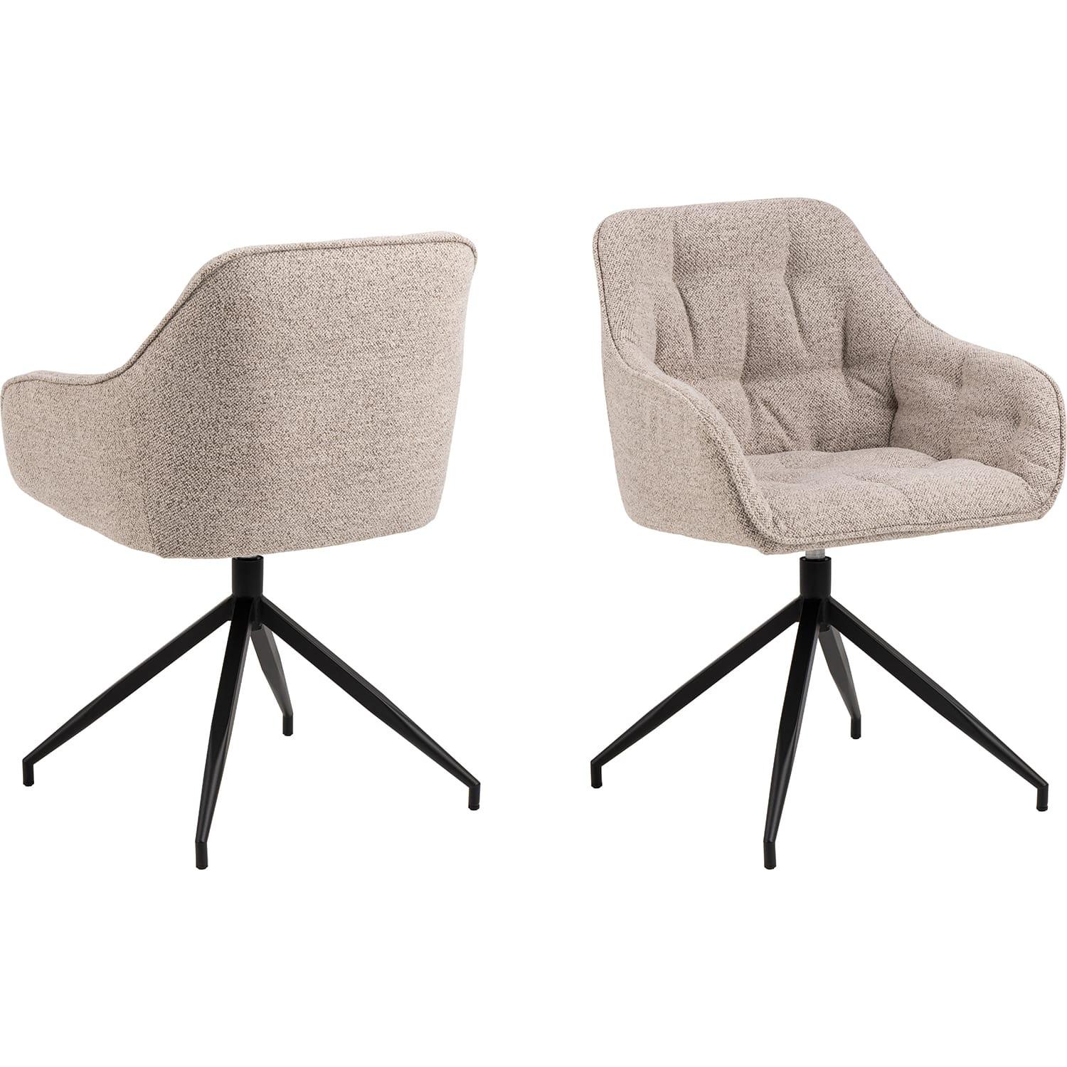 Modernes Design für zeitgenössische Räume Beiger Monza-Stoffbezug für einen exklusiven Look Angenehmes Sitzgefühl durch Armlehnen Knopfheftungsdetail zur Texturverbesserung Schwarze, pulverbeschichtete Stahlbasis mit Schwenkfunktion Armlehnenhöhe vom Boden: 63 cm Rückenlehnenhöhe: 37 cm Bodenschutz durch Plastik Fusskappen Maximale Belastbarkeit: 110 kg