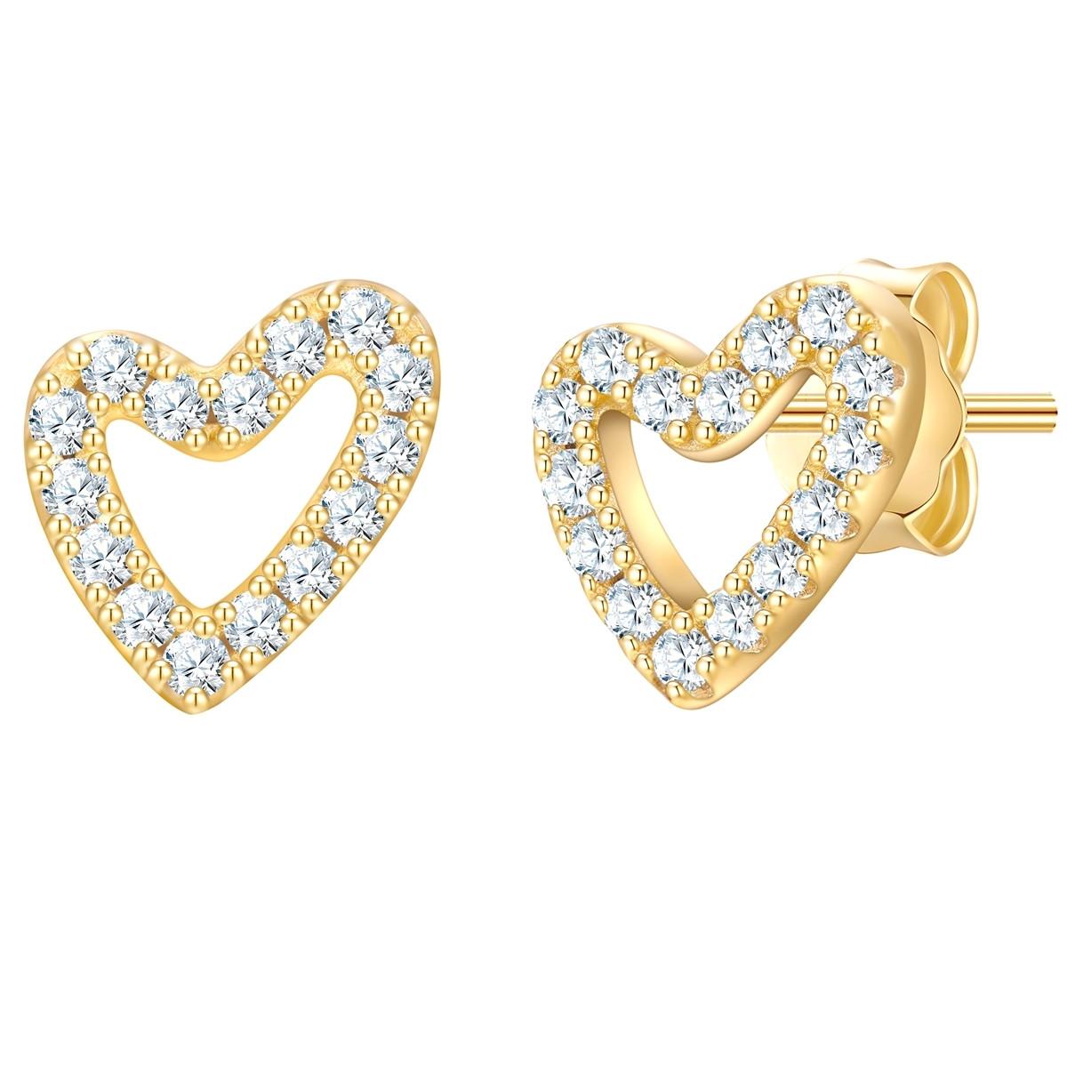 Diese romantischen Herz-Ohrstecker des Labels Glanzstücke München begeistern alle verliebten Fashionistas im Nu. Die filigranen Fassungen im Cutout-Design sind aus 925er Sterlingsilber gefertigt und mit warm schimmerndem Gelbgold veredelt - ein Must-Have für alle Fans der klassischen Edelmetall-Nuance. Glamouröses Highlight ist der dichte Besatz mit funkelnden Zirkoniakristallen, deren präzise Facettierung die Ohrringe zu Eyecatchern am Ohrläppchen macht. Auch der Tragekomfort lässt keine Wünsche offen: Der praktische Steckverschluss sorgt für einfache Handhabung und schnelles An- und Ablegen.