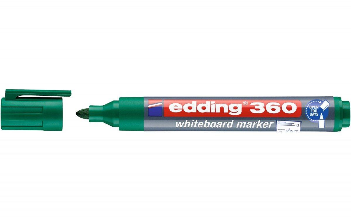 EDDING 360 - Whiteboard-Marker Zum Schreiben und Markieren auf Whiteboards. Trocken abwischbar von fast allen geschlossenen Oberflächen wie Emaille, Glas, Melamin. Cap-off-Tusche - daher vorübergehend offen lagerfähig ohne einzutrocknen. ?Cap-off? Zeit: bis zu einigen Tagen offen lagerfähig ohne auszutrocknen geruchsarme Tinte