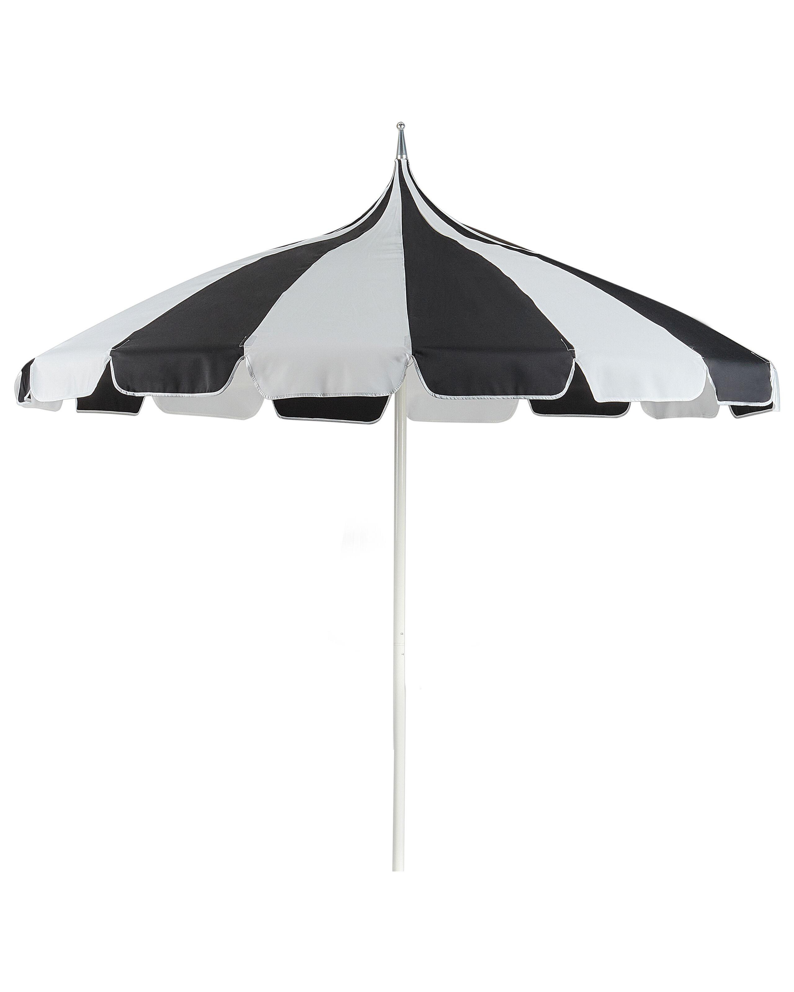 Stilvoller Marktschirm für Garten oder Terrasse. Dieser Sonnenschirm verbindet Funktionalität mit Stil, spendet Schatten und wertet Ihren Aussenbereich mit Charme auf. Er ist aus UV- und rostbeständigem Material gefertigt, das Ihnen nicht nur Sonnenschutz, sondern auch Langlebigkeit bietet. Der Mast ist aus leichtem aber robustem Aluminium gefertigt, wodurch der Schirm sich einfach tragen lässt und trotzdem Stabilität gewährleistet. Dank seiner modernen Farbkombination sieht er in Gärten und Terrassen in verschiedenen Stilrichtungen wunderschön aus.