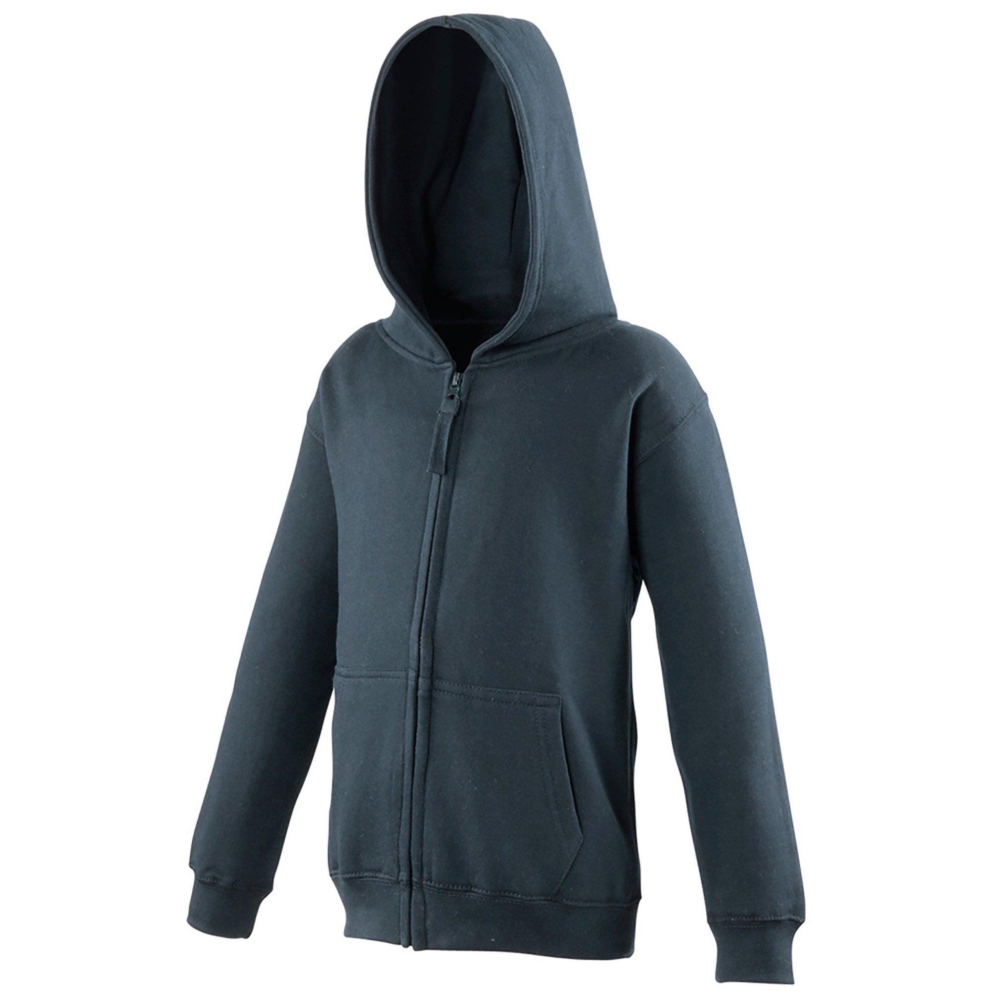 Kapuzen Weste mit durchgehendem Reißverschluss. Doppelnähte. Kapuze mit Innenfutter. Känguru Taschen. Keine Kordeln somit konform mit EU Regulation. Elastischer Bund und Bündchen. Stärke 280gsm. Material 80%Baumwolle 20%Polyester. Größe(Brustumfang) Small 5-6 Jahre(71cm), Medium 7-8 Jahre(76cm), Large 9-11 Jahre(81cm), XLarge 12-13 Jahre(86cm).