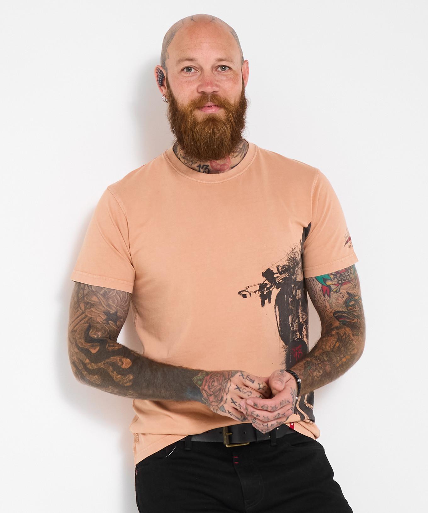 Dieses T-Shirt mit auffälligem Biker-Grafikdruck bietet einen markanten und unverwechselbaren Look. Das Design ist perfekt für alle, die eine robuste Ästhetik schätzen.