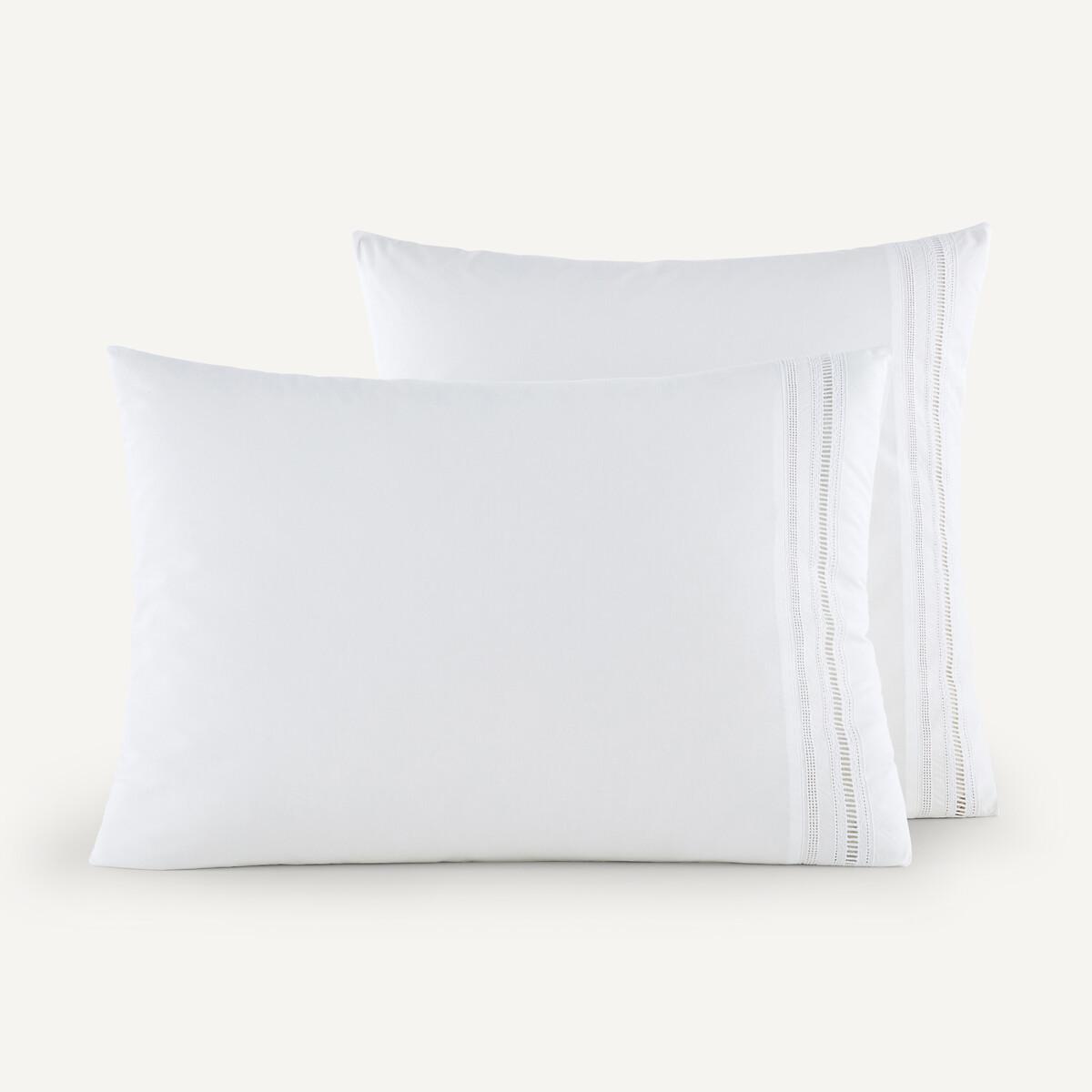 Der Kissenbezug Florentina aus weichem und frischem Perkal ist mit zarter Lochstickerei verziert. Diese Bettwäsche wird in Portugal aus Baumwolle aus kontrolliert biologischem Anbau hergestellt.