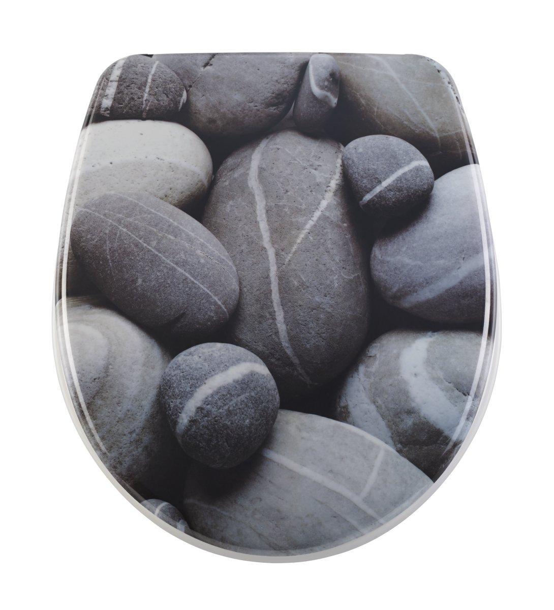 diaqua® WC-Sitz Nice Slow Down Stones 41 - 46.5 X 36.5 CM 37 - WC-Sitz mit Absenkautomatik für sanftes Schliessen von Deckel und Brille (Slow Down), Einknopfdrucktechnik mit praktischer Betätigung, zum Reinigen einfach abnehmbar (Easy Cleaning Push). Rasche Montage durch verstellbare und einfache Befestigung, aus pflegeleichtem und langlebigem Duroplast, universelle Passform für alle handelsüblichen WC-Anlagen, inkl. Befestigungsmaterial.