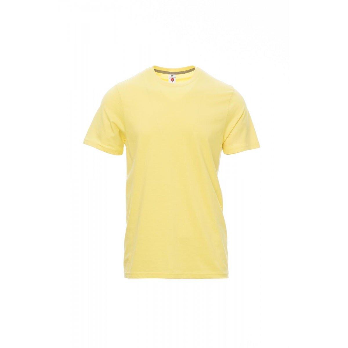 Dieses Herren-T-Shirt verfügt über einen klassischen Rundhalsausschnitt und kurze Ärmel. Der Kragen besteht aus einem 1,5 cm breiten Spandex-Rippstrick mit einer Kappnaht auf der Vorderseite. Ein kontrastfarbenes Verstärkungsband verläuft von Schulter zu Schulter am Kragen, und die Nähte sind dehnbar genäht. Das T-Shirt hat eine schlauchförmige Struktur (mimetische Farbe mit Seitennaht).