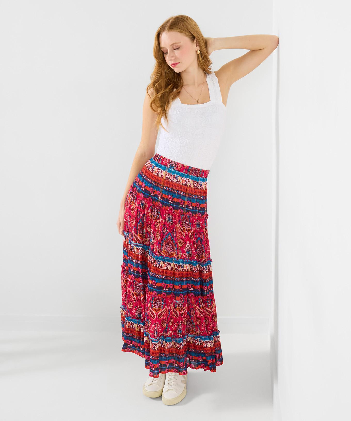 Dieser Maxirock aus Crinkle-Stoff eignet sich ideal für Reisen und warme Tage.