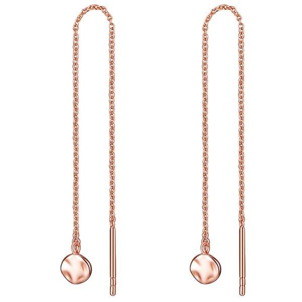 Schmuck-Highlight der Saison sind die Durchzieher - sogenannte Chain Earrings, bei denen eine lange filigrane Kette durch das Ohrloch gezogen wird. An einem Kettenende baumelt ein schmales Stäbchen, während das andere Ende unterschiedlichst gestaltet werden kann - bei dieser Kreation des Labels Glanzstücke München mit einem schlichten, runden Mini-Medaillon. Ankerkettchen, Stäbchen und das runde Endstück sind aus 925 Sterlingsilber gefertigt und mit Roségold veredelt - eine Goldnuance, die mit ihrem femininen Glanz alle Fashionistas begeistert. Ein tolles Geschenk für Schmuckliebhaberinnen, die extravagante Designs lieben!