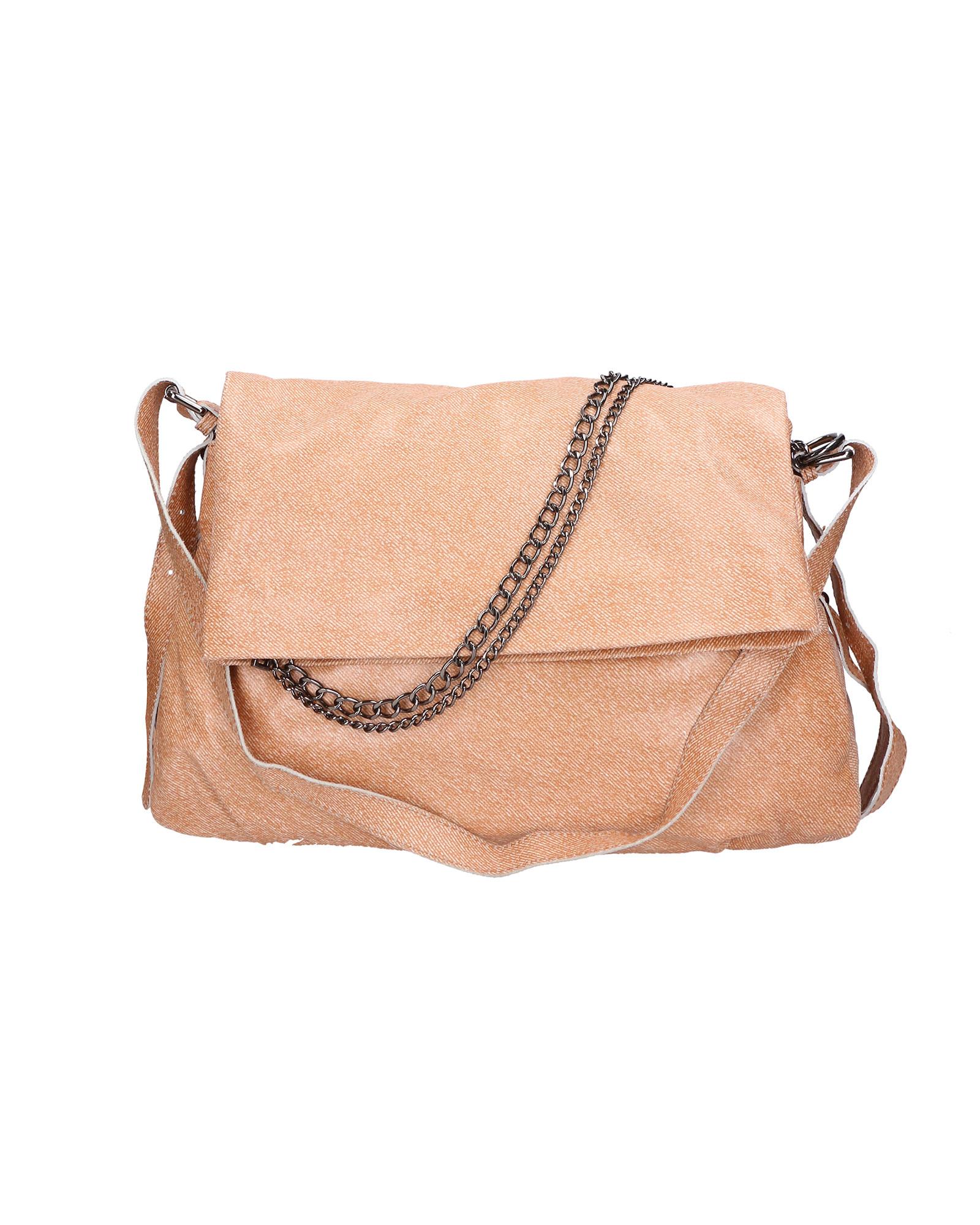 Damen-Umhängetasche aus Denim mit Frontklappe. Ausgestattet mit Schultergurt und Kettengriff. Hergestellt in Italien.