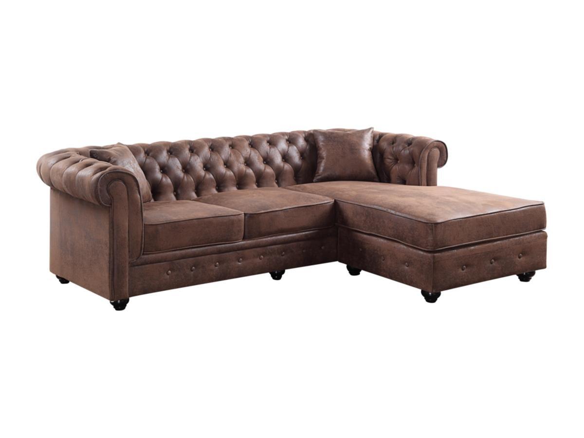 Vente-unique Chesterfield Ecksofa Microfaser Vintage Look TOLEDO