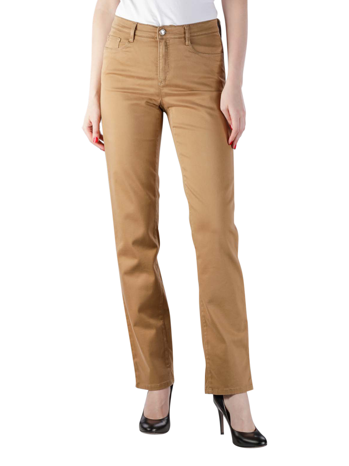 Die Carola Jeans ist in einem eleganten Farbton gehalten. Die feine Cognacfarbe betont den geraden Schnitt der Straight Fit Jeans mit dem geraden Bein. So streckt die Jeans mit dem klassischen 5-Pocket Schnitt und zeichnet eine schlanke Linie. Selbstverständlich sind an der Jeans alle Nähte Ton in Ton gearbeitet.