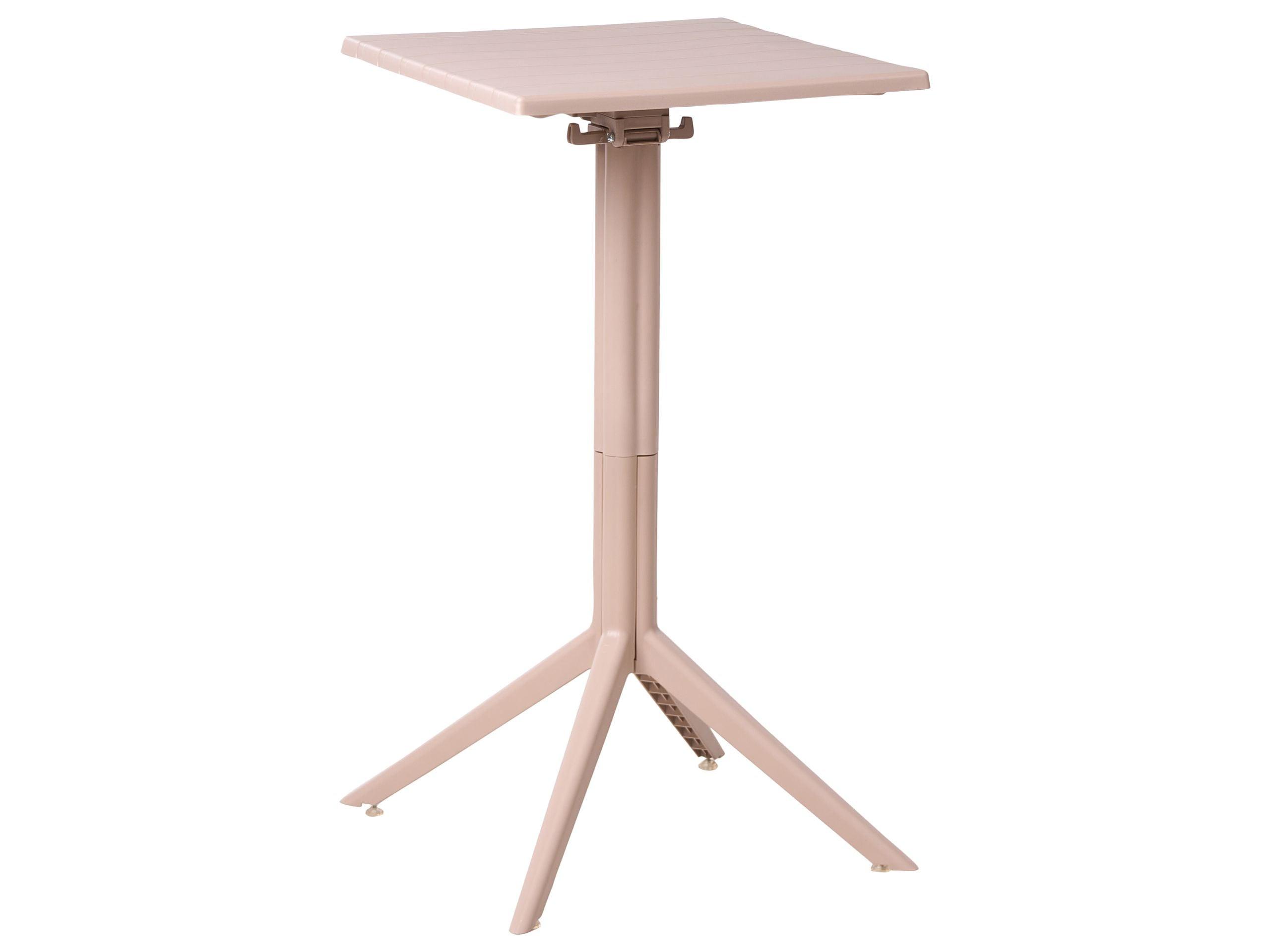 Gartentisch mit klappbarer Tischplatte. Gestalten Sie Ihren Aussenbereich mit diesem vielseitigen Bistrotisch, der sich insbesondere für kleine Balkone oder Gärten eignet. Trotz seines platzsparenden Designs bietet er eine großzügige Fläche für ein Frühstück zu zweit. Aus langlebigem Kunststoff gefertigt, ist der Tisch für den Outdoorbereich geeignet und besonders pflegeleicht. Dank der Klappfunktion kann er außerhalb der Saison mühelos verstaut werden.