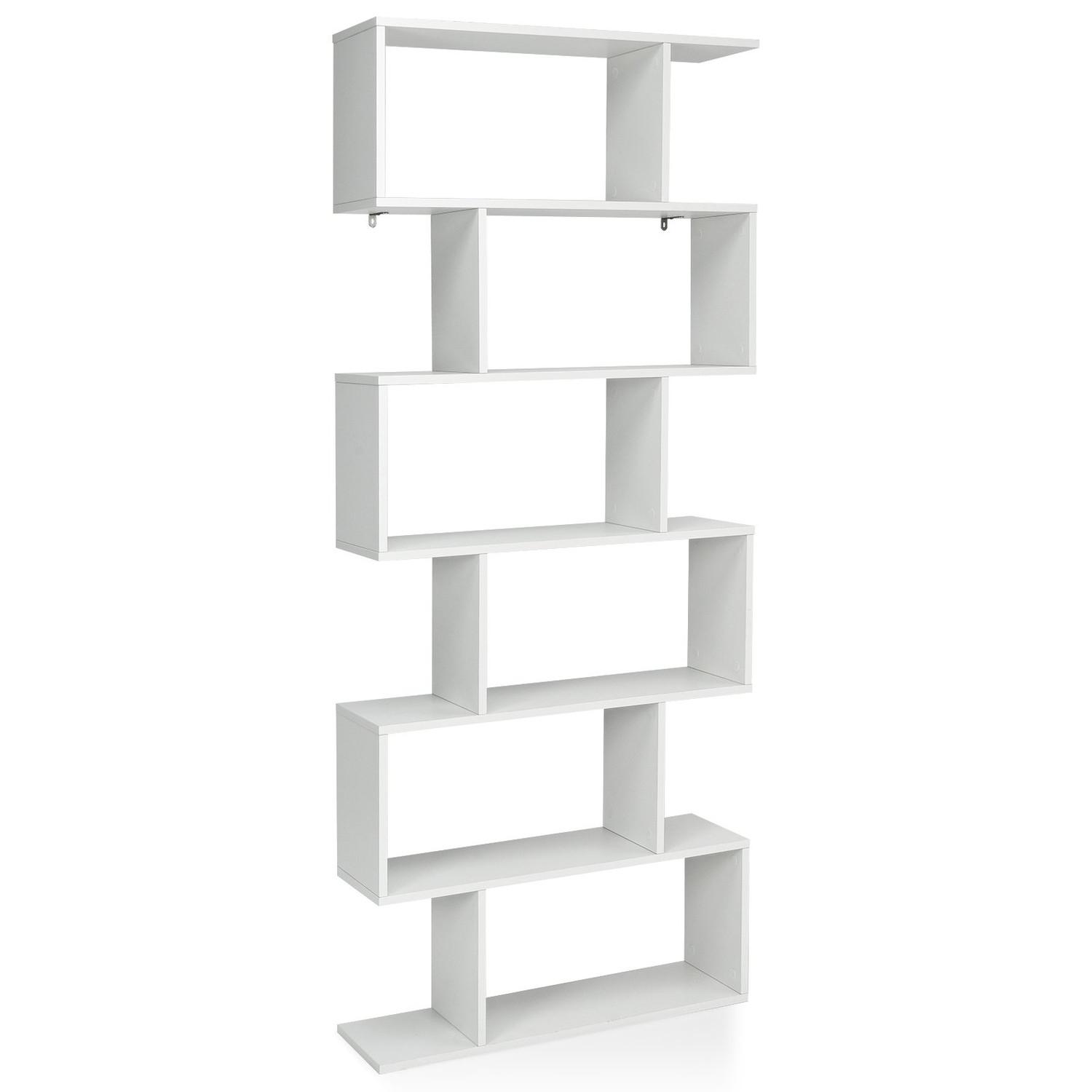 Northix Standregal 6 Ebenen S-Form Bücherregal Aufbewahrungsregal Holz Farbwahl-Weiß