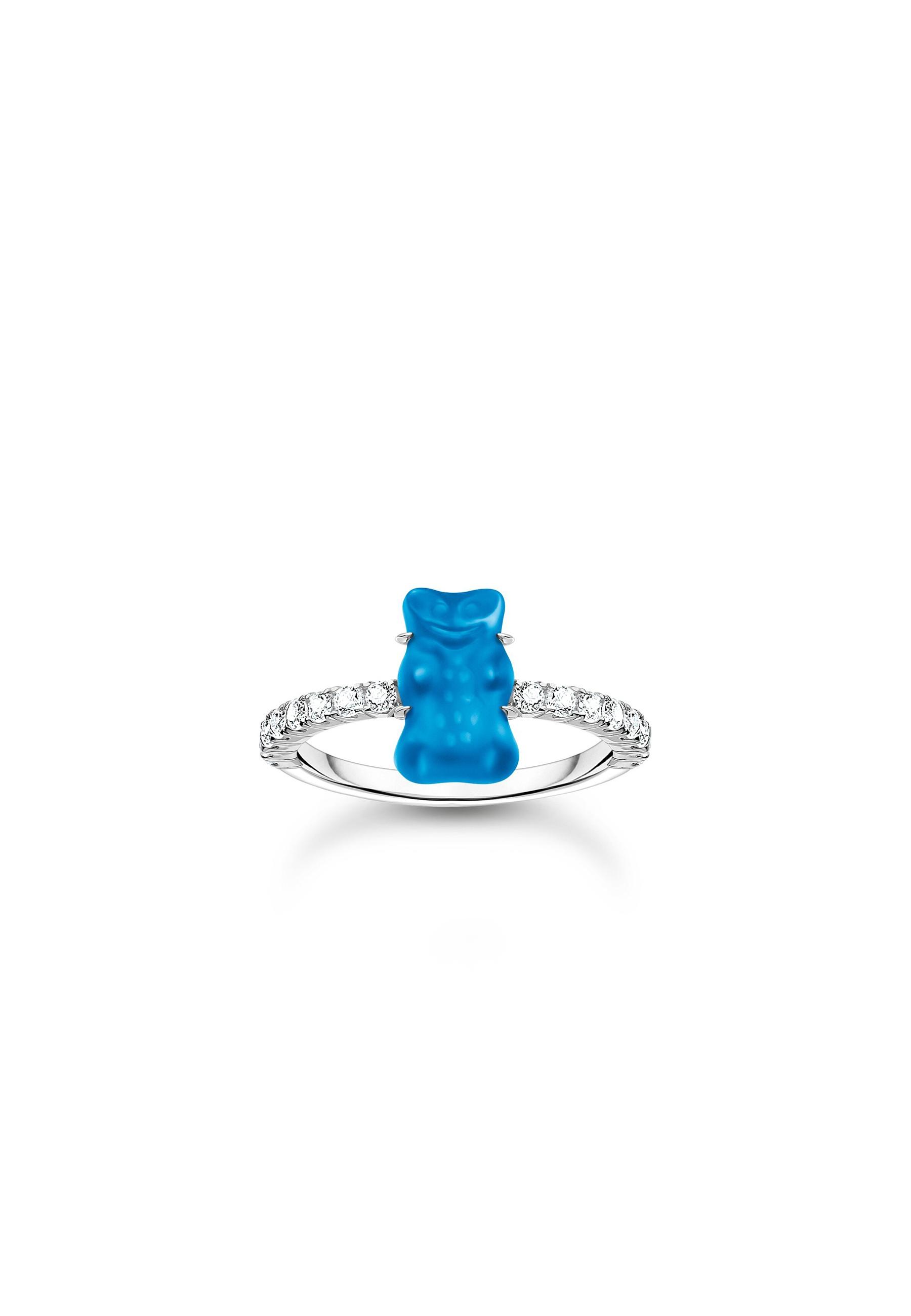 Zeigen Sie, dass Sie ein Fan der berühmten Gummibärchen sind - mit diesem Ring aus recyceltem Silber. Er präsentiert einen der HARIBO Goldbären und sieht täuschend echt aus. Der Bär im Miniformat ist aus hochwertigem, bruchsicherem, leicht satiniertem blauen Kristallglas gefertigt. Das süße Design weckt Kindheitserinnerungen - aber bitte nicht anknabbern ;-) Kombinieren Sie stattdessen diesen funkelnden Ring aus der THOMAS SABO x HARIBO Kollektion mit einem Augenzwinkern zu jedem Outfit - ob elegant oder Y2K-Style.