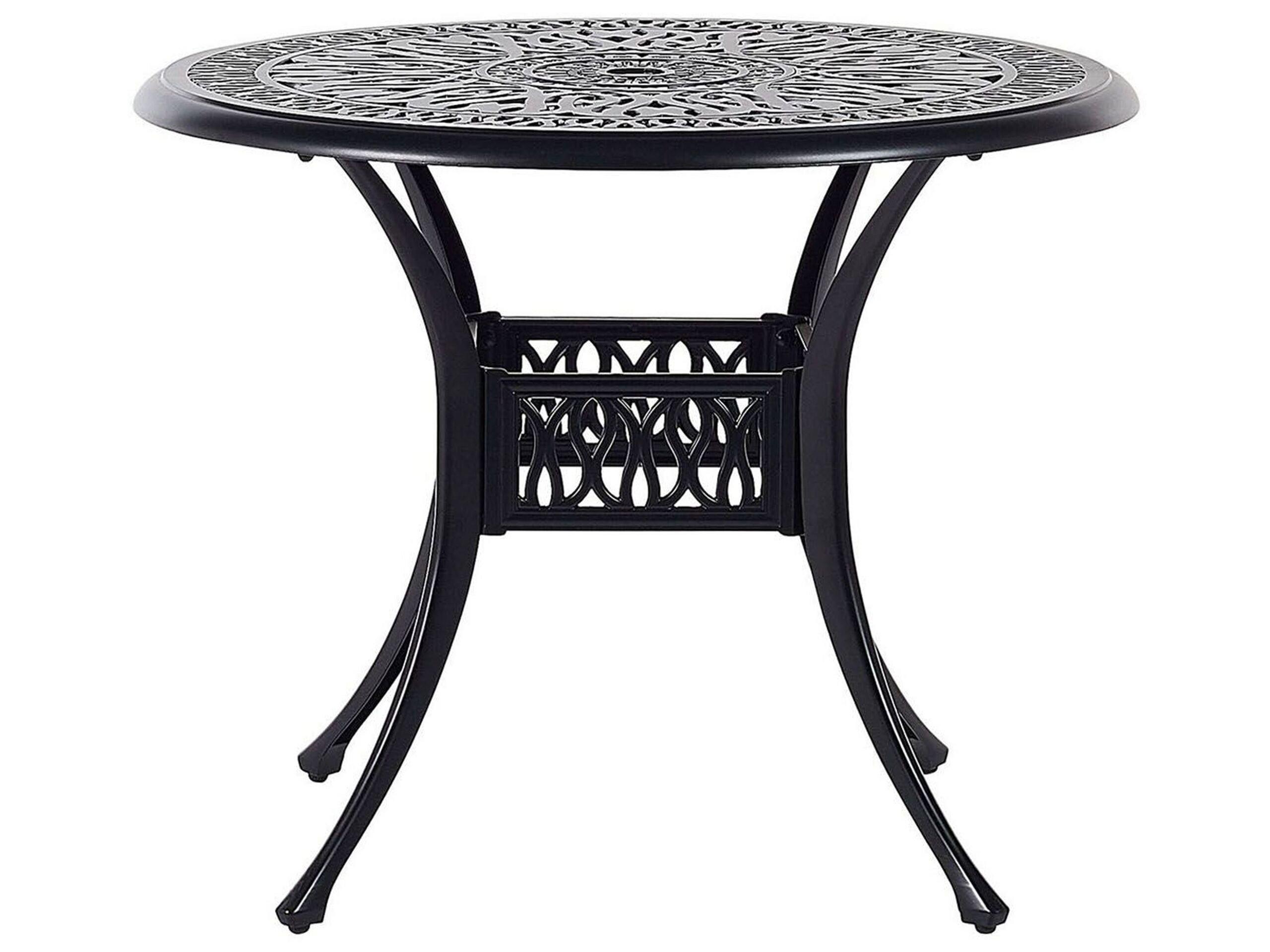 Eleganter Gartentisch in Schwarz. Die elegante Vintage-Optik und hochwertige Herstellung machen diesen Gartentisch zu einem Must-Have für jeden Retro-Liebhaber. Wenn Sie auf Ihrem Balkon frühstücken möchten, dann gibt es keine bessere Wahl als dieser Tisch - er ist nicht nur stabil sondern auch dank der dekorativen Motive ästhetisch ansprechend. Zögern Sie nicht und wählen dieses Möbelstück, um Ihre Gäste während einer Kaffeepause zu begeistern!