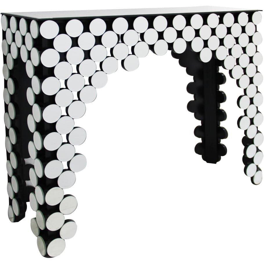 Mit runden Spiegelglaselementen besetzter Konsolentisch