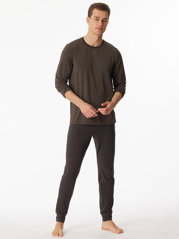 Dieses Pyjama-Set bietet aussergewöhnlichen Komfort für einen erholsamen Schlaf. Das Oberteil verfügt über einen klassischen Rundhalsausschnitt und lange Ärmel, während die Hose für eine entspannte Passform konzipiert ist. Das weiche Micromodal-Gewebe sorgt für ein luxuriöses Gefühl auf der Haut.