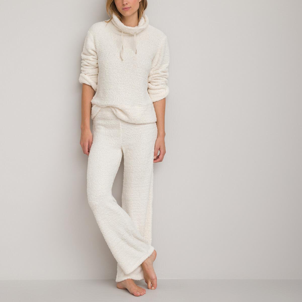 Dieser Pyjama ist aus weichem Sherpa-Fleece gefertigt und bietet aussergewöhnlichen Komfort und Wärme. Das Set besteht aus einem Oberteil mit langen Ärmeln und einem hohen Kragen mit Bindeband sowie einer passenden Hose mit Gummizugbund, perfekt zum Entspannen zu Hause.