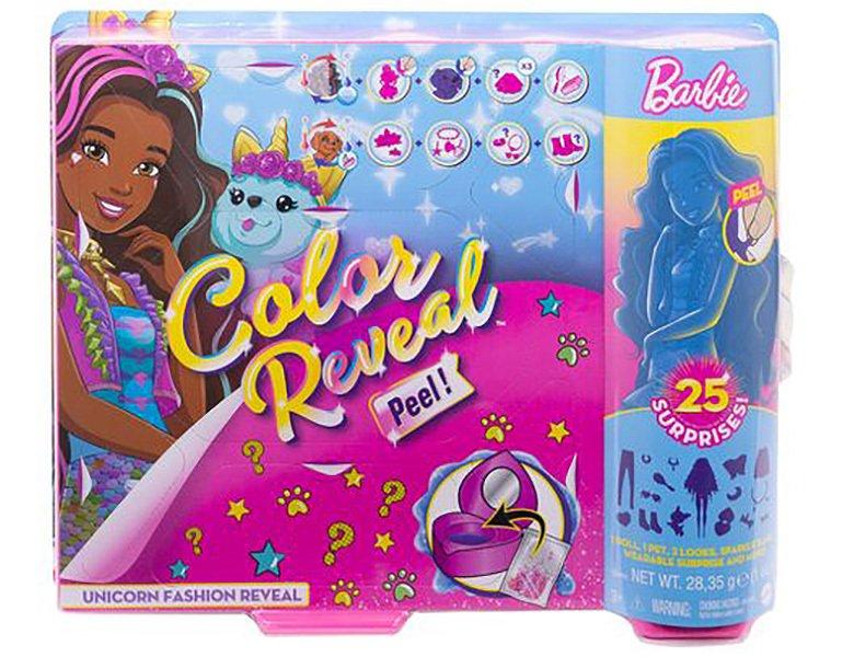 Dieses Barbie Color Reveal-Set Einhorn begeistert schon beim Auspacken mit 25 Überraschungen, darunter wiederholbare Farbwechseleffekte, ein Tier und eine Barbie-Puppe mit zwei Outfits.