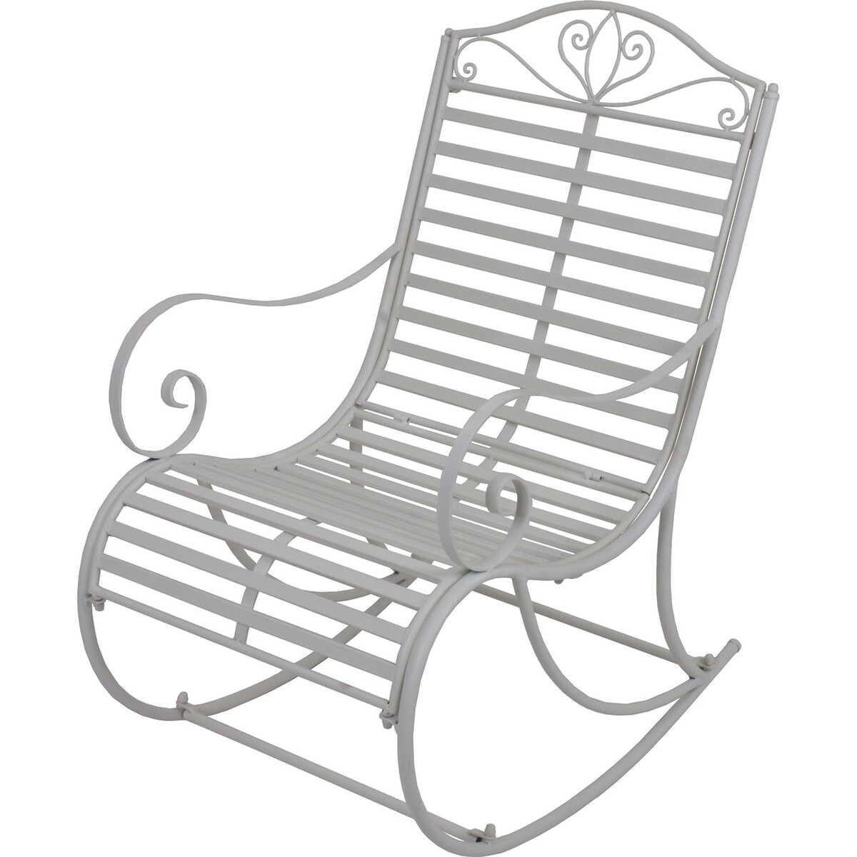 Weiss lackiertes Eisen für eine elegante Optik Klassisches Design für einen zeitlosen Stil Sanfte Schaukelbewegung für Entspannung und Wohlbefinden Ideal für den Gebrauch im Innen- und Aussenbereich Komfort und Stil in einem Möbelstück Maximale Belastbarkeit von 110 kg Rückenlehnenhöhe von 67 cm für zusätzlichen Komfort