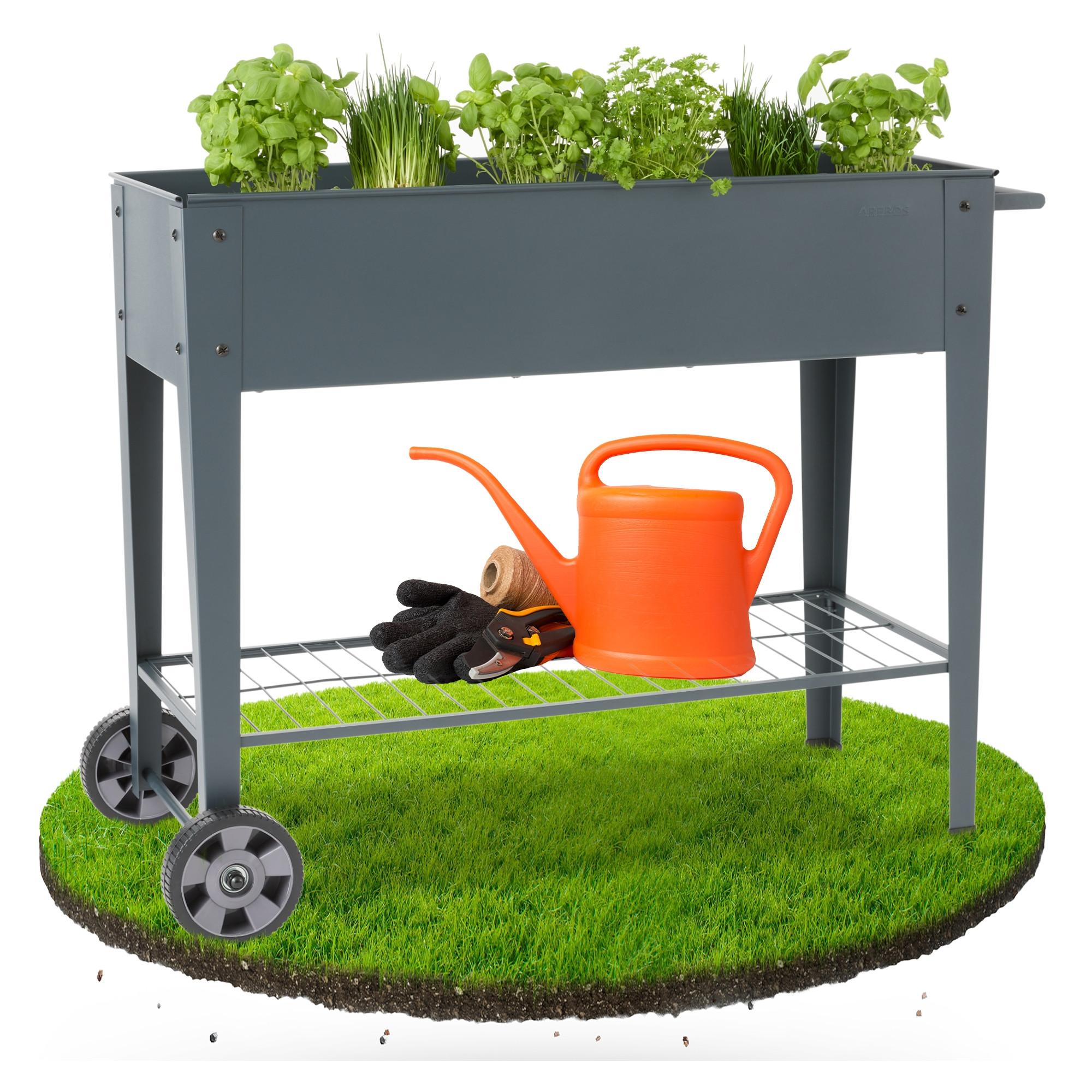 1x Hochbeet mit Ablage, Handgriff und Rädern
