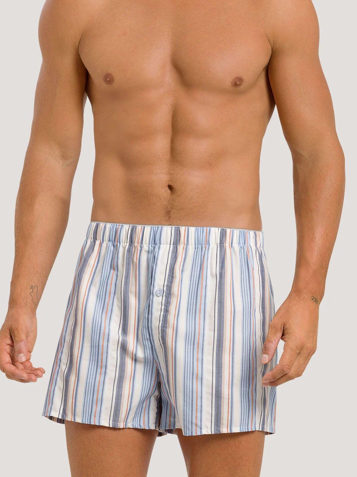Diese gewebten Boxershorts sind ein vielseitiger Begleiter, ideal zum Schlafen, als Loungewear oder als Unterwäsche. Sie verfügen über einen stoffbezogenen Elastbund und einen Eingriff mit Knopfleiste.