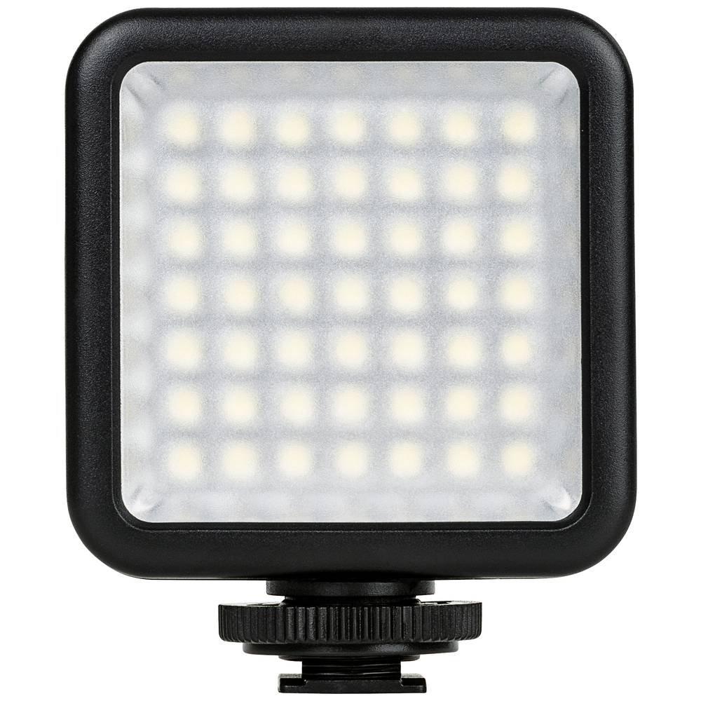Die langlebigen LEDs mit einer konstanten Farbtemperatur von max. 6000K liefern neutrales Tageslicht. Die Helligkeit der LEDs ist bequem per Drehregler stufenlos dimmbar. Das LED Videolicht kann auf verschiedene Arten montiert werden. Für noch mehr Licht können sogar mehrere Videolichter miteinander verbunden werden: Montage auf Kamera/Camcorder mit Blitzschuh Zur Montage auf eine Kamera oder einen Camcorder schieben Sie einfach den Universal-Blitzfuss des VL-49 in den Blitzschuh Ihrer Kamera oder Ihres Camcorders. Montage auf Stativ Zur Montage auf ein Stativ schrauben Sie das LED Videolicht mittels dem ¼ Stativgewinde, das sich unten am Universal-Blitzfuss befindet, auf Ihr Stativ (Stative optional bei DÖRR erhältlich). Mehrere VL-49 LED Videolichter miteinander verbinden Es lassen sich mehrere VL-49 LED Videolichter miteinander verbinden, indem der jeweilige Universal-Blitzfuss in die seitlichen Steckverbindungen geschoben wird.