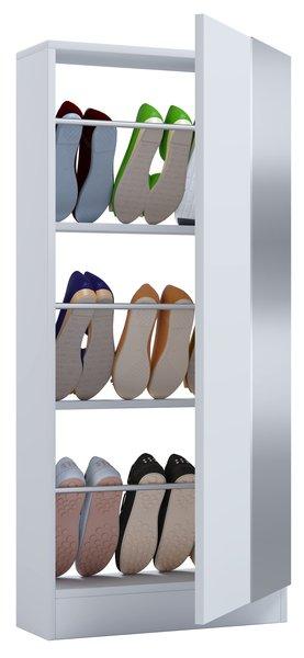 Der Schuhschrank "Fulisa L Spiegel" ist ein praktischer Schuhschrank für bis zu sechs paar Schuhe. Der Designer hat bewusst auf ein zeitloses Design und eine geringe Möbeltiefe geachtet, damit auf wenig Platz viel Stauraum entstehen kann. An der Drehtüre ist ein Spiegel angebracht, der dem Schuhschrank eine besonders schöne Optik verleiht.