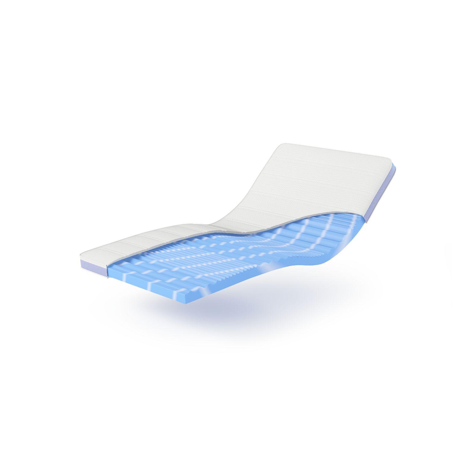 <b>Surf 100 Gelschaumtopper, 7 Zonen Wellenschnitt, atmungsaktiver Bezug, für Allergiker geeignet</b>. Der Surf 100 Gelschaumtopper bietet eine exzellente Möglichkeit, Ihre Matratze aufzuwerten und den Schlafkomfort signifikant zu erhöhen. Mit einer zusätzlichen Liegehöhe von 8 cm und einem Kern aus Geltouch Ocean-Blue Gelschaum, passt sich dieser Topper perfekt an den Körper an und unterstützt durch seine 7 Zonen Wellenschnitttechnik gezielt alle Körperbereiche, insbesondere die Wirbelsäule. Die einzigartige Profilierung sorgt für eine effektive Druckentlastung und fördert eine gesunde Schlafhaltung. Der atmungsaktive und feuchtigkeitsregulierende Bezug, ausgestattet mit Klimawatte, verspricht ein angenehmes Schlafklima und eignet sich hervorragend für warme Nächte. Verfügbar in zahlreichen Größen, passt der Topper zu jeder Matratze und ist in einer mittleren Härte erhältlich, die durch den Cool-Effect Bezug ergänzt wird. Einfach in der Handhabung, lässt sich der Bezug für eine hygienische Reinigung bei 60 Grad waschen. Der Surf 100 ist somit die ideale Wahl für jeden, der seinen Schlafkomfort erhöhen und gleichzeitig eine allergikerfreundliche Lösung sucht.