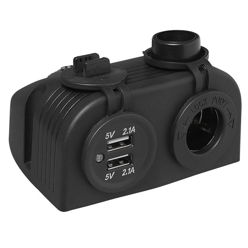 Pricenet Aufputz-Montagesatz: DIN-Buchse + USB-Doppelanschluss Typ A 2x2100mA