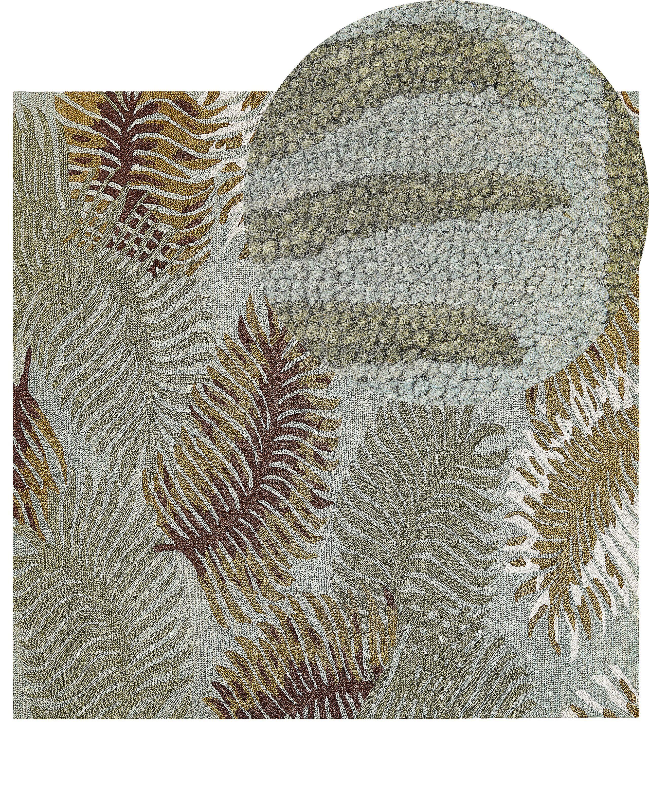 Handgetufteter Kurzflorteppich mit Pflanzenmuster. Setzen Sie auf Naturelemente in Ihrem Zuhause und verschönern Sie Ihren Fussboden mit diesem gemütlichen Kurzhaarteppich, der Sie mit seinem schönen Pflanzenmotiv bestimmt verzaubern wird. Er ist aus hochwertiger Wolle gefertigt, die jahrelangem Gebrauch standhält und die kräftige Textur sowie die frischen Farbtöne beibehält. Das Modell passt perfekt zu Boho- oder rustikalen Räumen, aber auch in traditionelle Einrichtungen, da es dank der Erdtöne eine beruhigende und entspannende Wirkung hat. Wo auch immer Sie sich entscheiden, den Wollteppich zu platzieren, er wird mit Sicherheit den Wohlfühlfaktor Ihres Zimmers steigern.