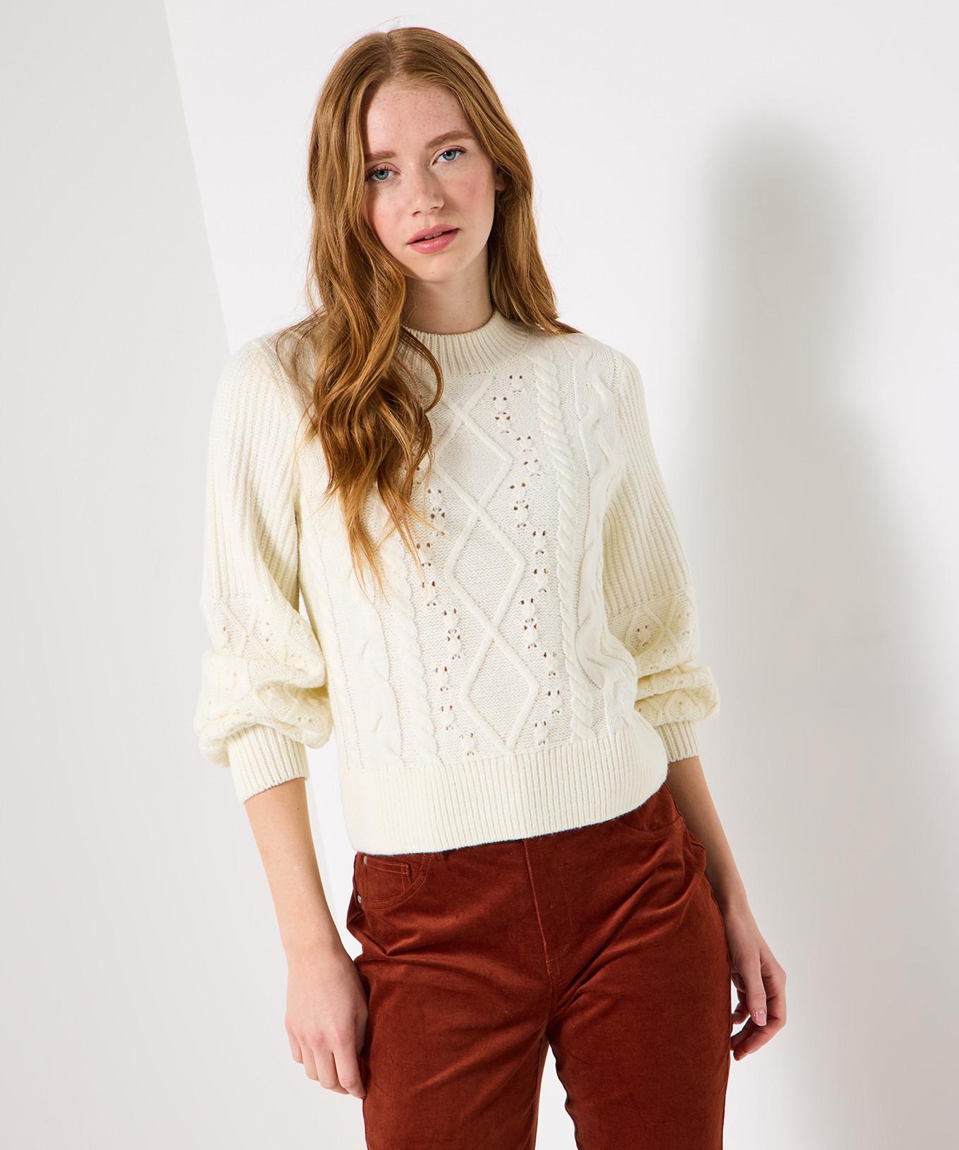 Joe Browns Cremefarbener Strickpullover mit Zopfmuster