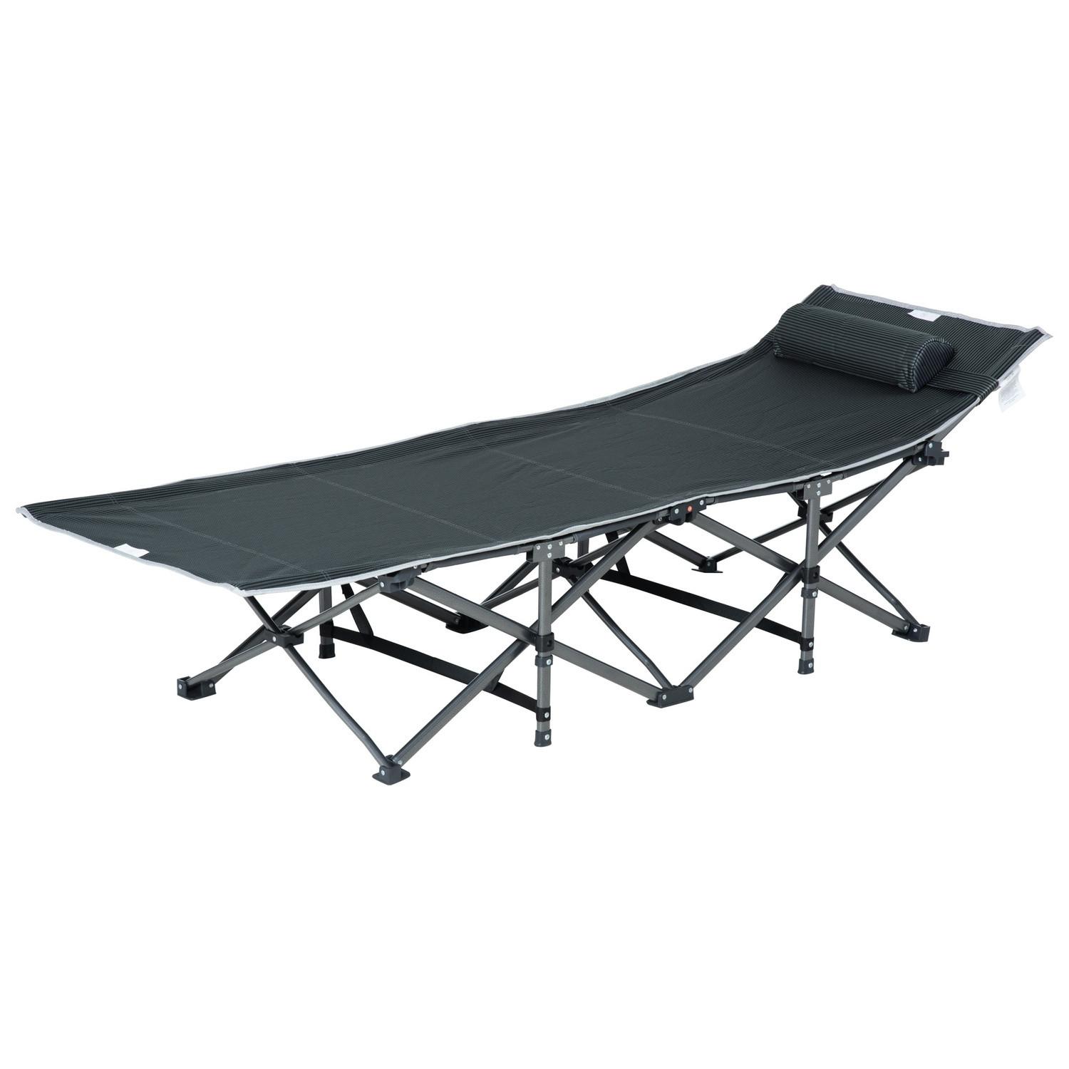 Das Campingbett verfügt über einen robusten Stahlrahmen und strapazierfähiges Oxford-Gewebe, das bis zu 150 kg tragen kann, was es sowohl robust als auch zuverlässig macht. Die Wendematratze bietet Vielseitigkeit und sorgt für Wärme in kühlen Nächten und Kühle bei wärmerem Wetter. Das mit Schaumstoff gefüllte Kissen sorgt für zusätzliche Gemütlichkeit und sorgt für einen erholsamen Schlaf unter den Sternen. Darüber hinaus hält die integrierte Seitentasche Ihre wichtigsten Dinge griffbereit, sodass Sie Ihr Telefon, Ihre Schlüssel oder Ihre Wasserflasche bequem verstauen können.
