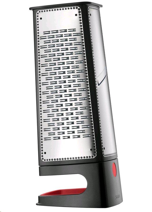 Die kann einfach mehr, die ist wirklich multitaskingfähig - Die Vierkantreibe mit Auffangbehälter von Silit reibt, hobelt, raspelt, schneidet und fängt auch gleich alles auf. Vier scharfe Flächen aus rostfreiem Edelstahl sorgen für beste Ergebnisse: Fein für Hartkäse, Karotten und Äpfel, grob für Kartofffeln, Obst und Käse, die Bänder für Schokolade und Weichkäse und der Hobel für Gurken, Kartoffeln und anderes Gemüse. Dank des praktischen Auffangbehälters fällt nichts daneben. Das Schneidgut kann ganz leicht herausgestreift und gleich weiterverarbeitet werden. Die clevere Form der Reibe ermöglicht einen festen Halt beim Zubereiten sowie eine platzsparende Aufbewahrung. Und zur Reinigung kann die Vierkantreibe einfach unter fliessendes Wasser oder problemlos in die Spülmaschine.