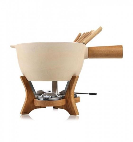 Dieses robuste Caquelon wird mit einem Sockel, drei Brennern und zwölf Fonduegabeln geliefert.Topf immer etwas anheben so entstehen keine Kratzer auf dem Kochfeld.