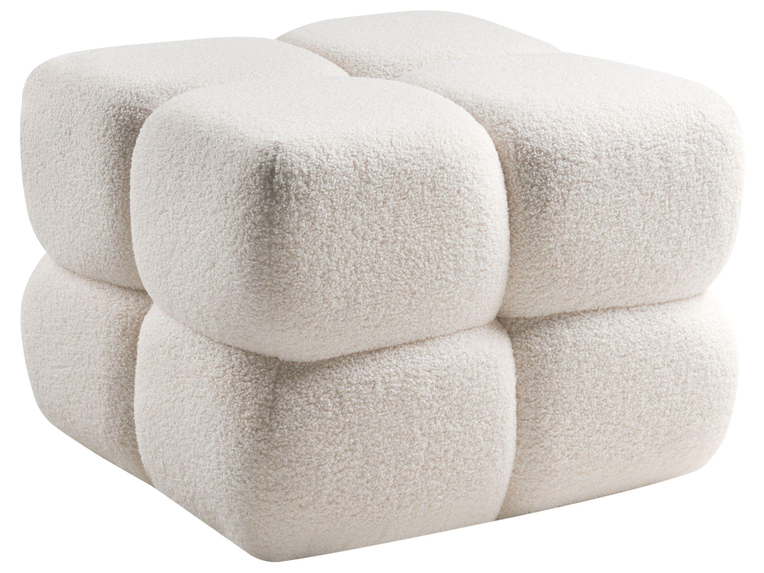 Grosser, quadratischer Hocker aus Teddystoff. Dieser stilvolle Pouf verleiht jedem Raum eine moderne und gemütliche Atmosphäre. Der weiche Teddystoff sorgt für eine warme und angenehm weiche Haptik. Die skulpturale Würfelform bringt einen Hauch von Modernität und macht ihn vielseitig einsetzbar – ob als zusätzliche Sitzgelegenheit, Fussablage oder dekoratives Wohnaccessoire.