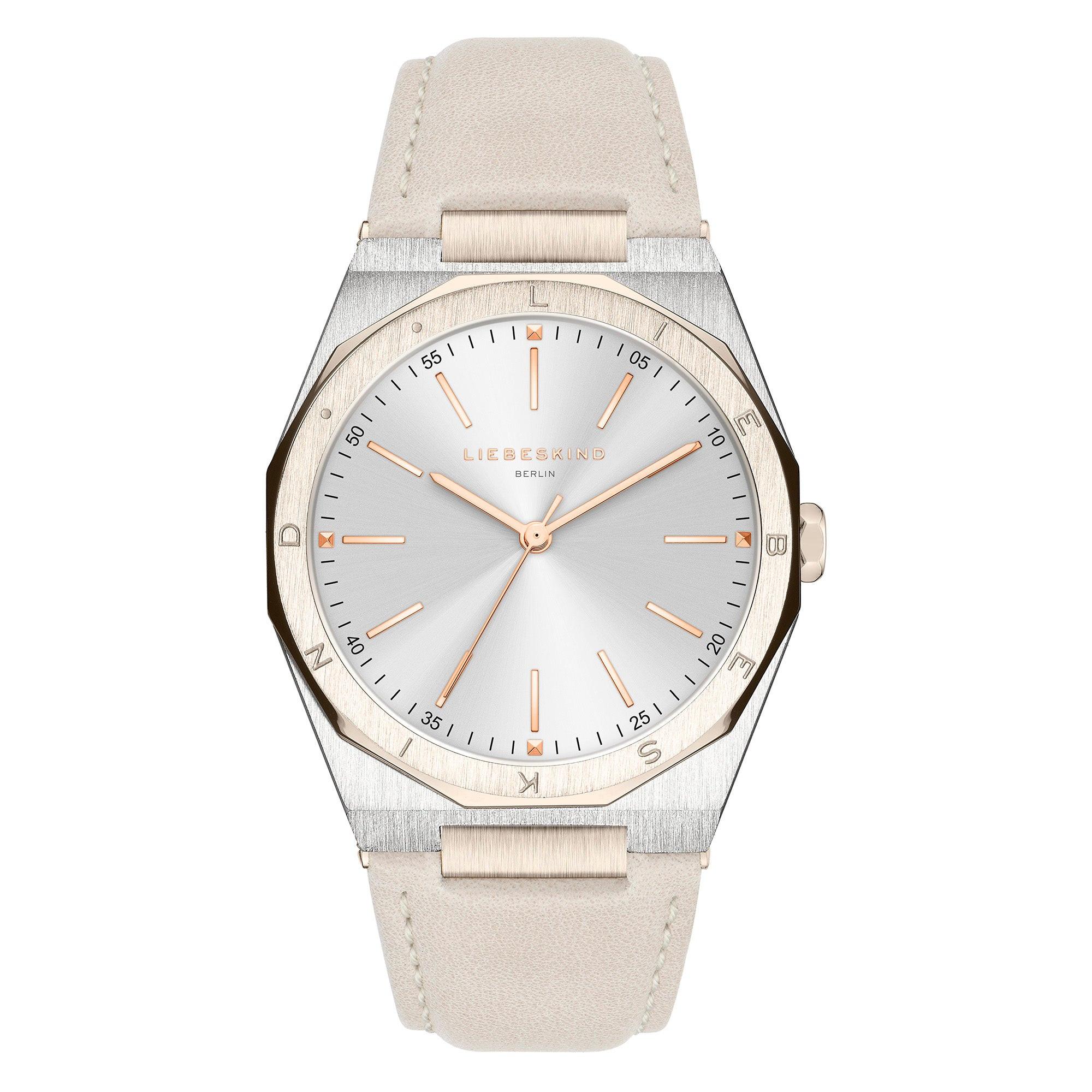 Diese hochwertige Uhr von LIEBESKIND BERLIN ist ein echter Blickfang. Perfekt verarbeitet mit hochwertigem Lederband und gebürstetem, aufgesetztem Topring und modernem Bicolor Gehäuse ist das Modell ein stylisches Musthave, das perfekt zu den verschiedensten Looks kombiniert werden kann. Dank zuverlässigem Quarzwerk und einer Wasserdichtigkeit von bis zu 5 ATM bleiben bei dem Modell keine Wünsche offen. Ein echtes Lieblingsstück, was in keiner Sammlung fehlen darf!