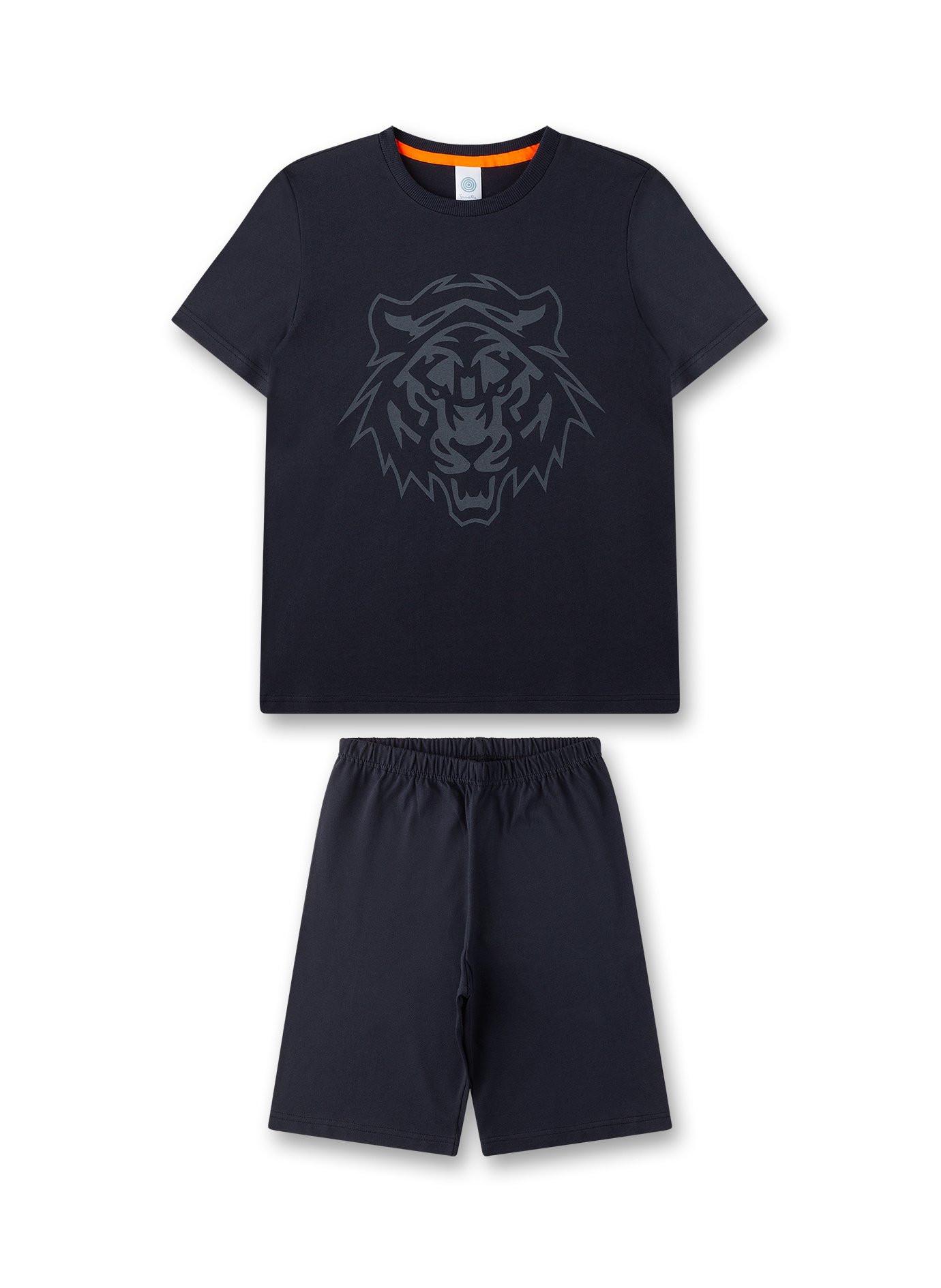 Cooler Sommer-Schlafanzug von Sanetta für Jungen mit coolem Tiger-Konterfei auf dem T-Shirt.