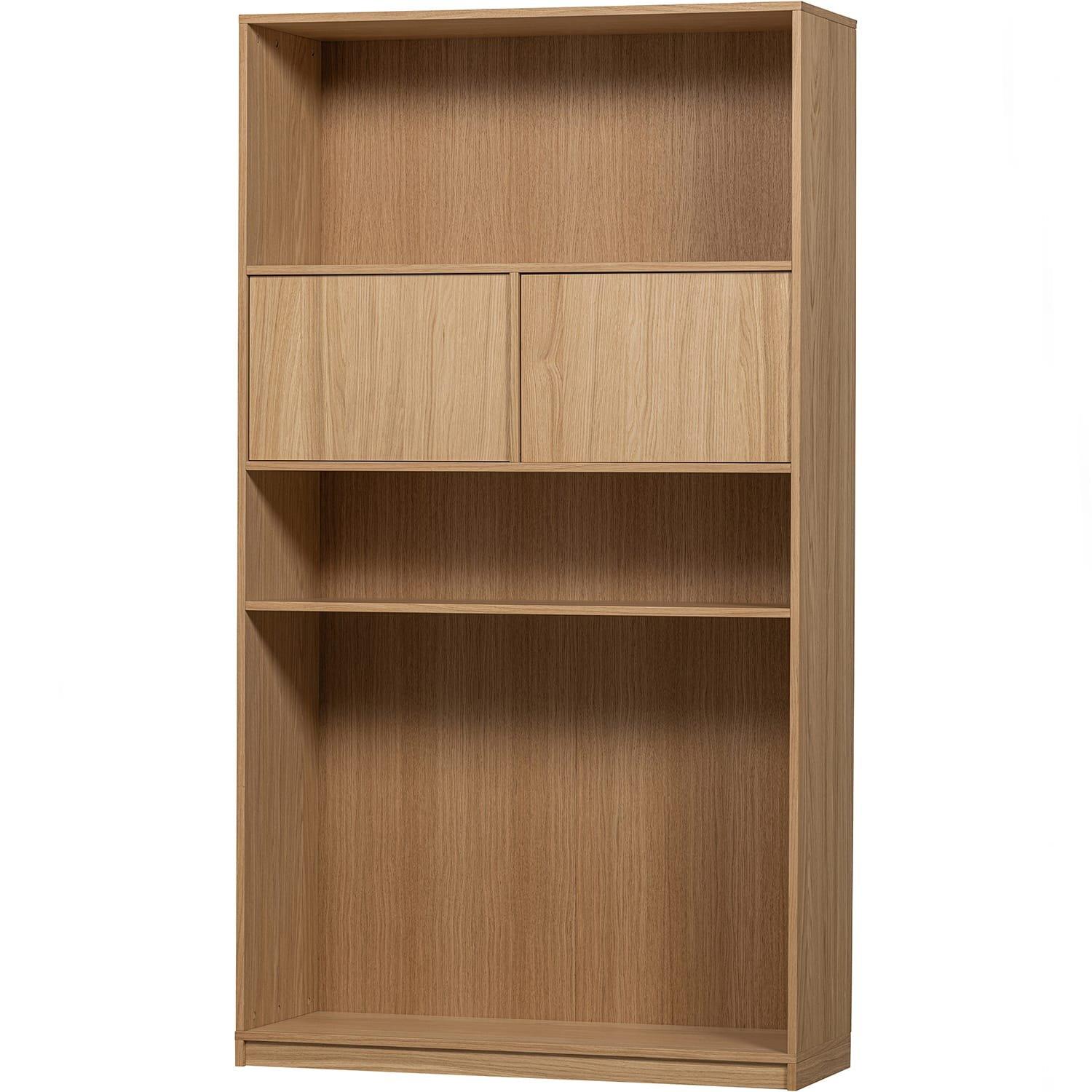 Von der imposanten Schrankwand bis zur schmalen Nische, vom stilvollen TV-Schrank über die gesamte Wandbreite bis zum verspielten Sideboard. Mit der Modular-Serie stehen Ihnen alle Möglichkeiten offen! Das matte Eichenfurnier sorgt für ein warmen, zeitlosen Look und fügt sich leicht in verschiedene Einrichtungsstile ein. Ob Sie nun ein Retro-, skandinavisches oder botanisches Interieur haben, Modulair ist Ihr neuer Blickfang!MaterialEiche zeichnet sich durch einen hellbraunen Farbton mit einem sanften gelben Schimmer und einer deutlich sichtbaren Maserung aus. Eichenfurnier besteht aus schmalen Streifen, die auf eine glatte Holzunterlage geklebt werden. Das Furnier ist mit einer Schutzschicht versehen, die die dauerhafte Qualität eines furnierten Möbelstücks gewährleistet.Abmessungen & DetailsHöhe: 199 cm, Breite: 110 cm, Tiefe: 40 cmRahmenstärke: 17 mmSchranktüren mit Push-to-Open-SystemMax. Tragfähigkeit: 15 kg pro RegalPflegehinweiseBehandeltes Eichenfurnier ist mit einem leicht feuchten, sauberen Tuch einfach zu reinigen. Die anschliessende Trocknung sorgt für ein streifenfreies Ergebnis. Das verleimte Furnier kann sich verformen, wenn es Hitze und/oder Feuchtigkeit ausgesetzt wird.LieferungDieser Modulair-Artikel wird in drei Paketen geliefert und ist mit Hilfe der beiliegenden Montageanleitung leicht zu montieren.