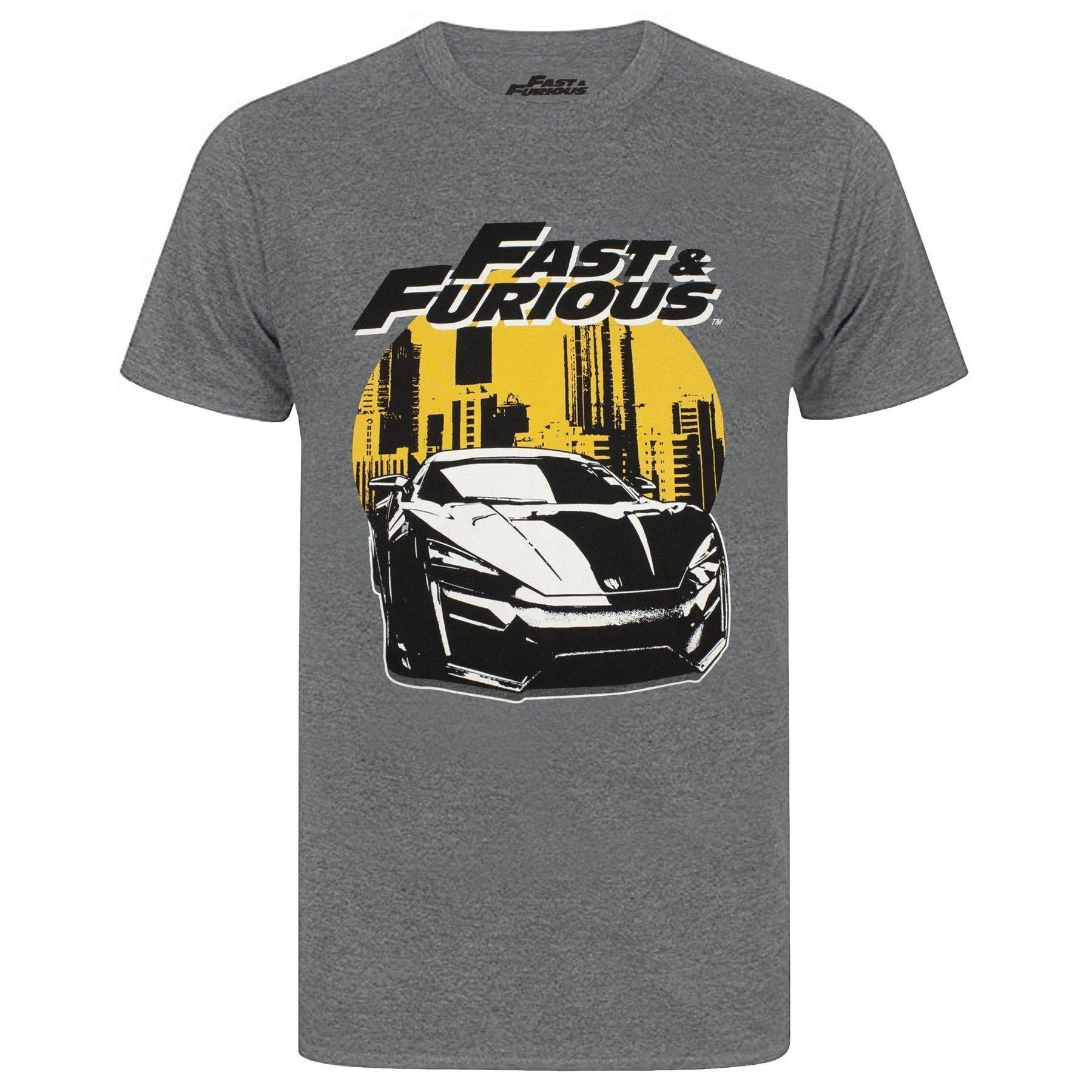 Dieses T-Shirt präsentiert einen auffälligen Grafikdruck, inspiriert von der Fast & Furious-Franchise. Das Design zeigt ein elegantes Auto vor einer Stadtskyline und ist somit ein herausragendes Stück für Fans.
