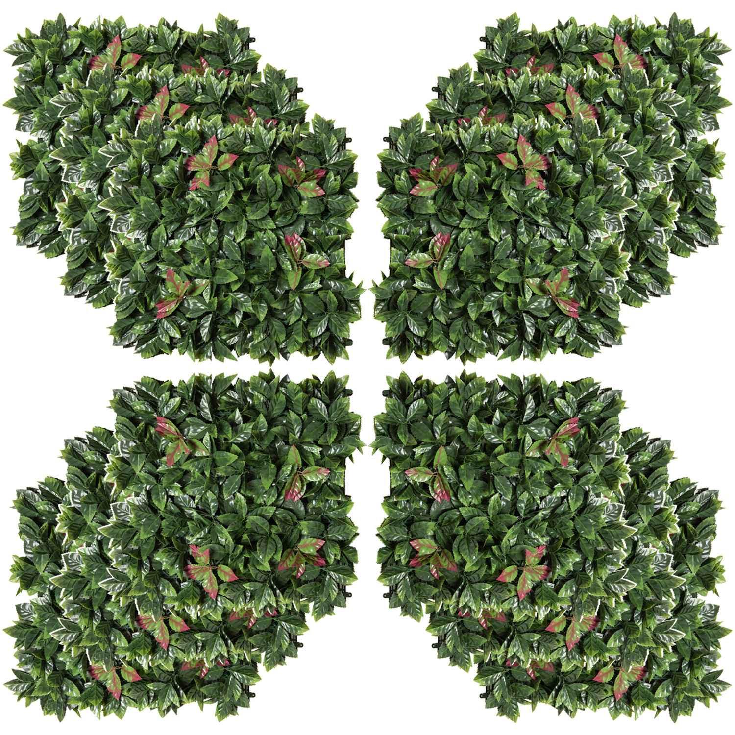 Northio Künstliche Pflanzenwand 12 Stück Uv-Schutz Sichtschutz, Glanzmispeln Design, 50X50 Cm, Für Garten Outdoor