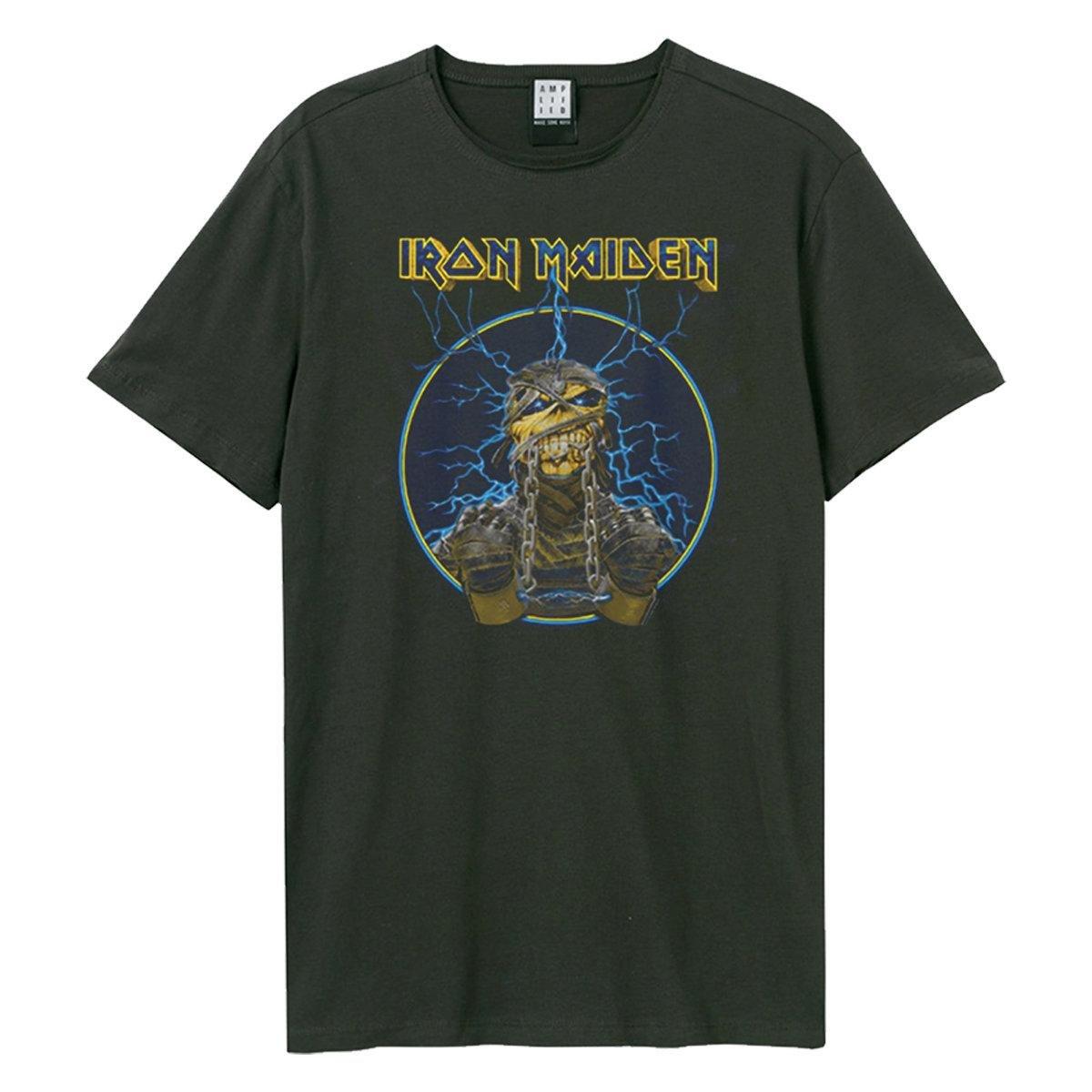 Dieses T-Shirt zeigt einen auffälligen Grafikdruck des ikonischen Maskottchens Eddie in Mumien-Optik, umgeben von elektrisch blauem Blitz in einem runden Rahmen. Das Bandlogo ist prominent über der Grafik platziert. Dieses kurzärmelige T-Shirt bietet eine klassische Passform und ist eine vielseitige Ergänzung für jede Fan-Garderobe.