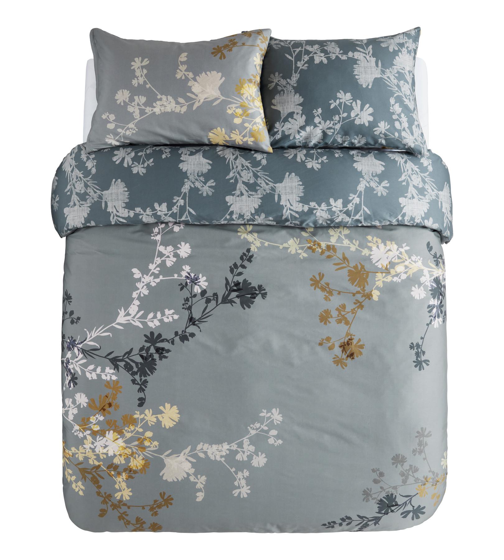 Der Mika 8 Duvetbezug präsentiert ein wunderschönes Blumenmuster, das jedem Schlafzimmer einen Hauch von Natur und Eleganz verleiht. Das Design kombiniert Grau-, Blau- und Gelbtöne und schafft eine harmonische und einladende Atmosphäre.