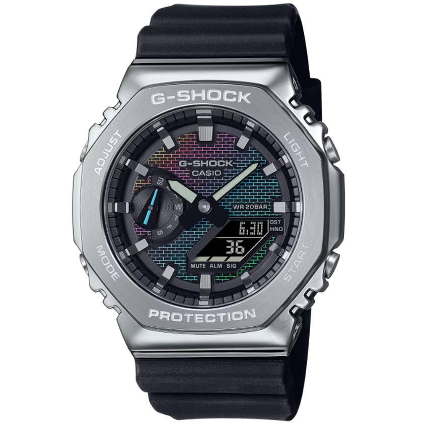 Ein weiterer Stein in der Wand: dieses Mal mit einem Regenbogen aus Farben. Wir präsentieren mutige Designs mit Glas oder Zifferblatt mit dem originalen Ziegelmuster der ersten Farbe G-SHOCK. Die Regenbogenbedampfung reproduziert die symbolischen Bilder von Ziegelwänden mit leuchtenden Regenbogentönen, die sich je nach Lichteinfall ändern. Das farbenfrohe Design bleibt dem Original G-SHOCK treu und bietet die Haltbarkeit, um Barrieren zu durchbrechen und ständig an die Grenzen zu gehen. Sie können Ihren Favoriten aus den ikonischen 5600-Modellen oder den kombinierten analog-digitalen 2100-Modellen wählen. Bei den Modellen DW-5600 und GM-5600 weist das Uhrenglas ein farbwechselndes Ziegelmuster auf, das durch Aufdampfung in einer Abstufung mit Regenbogen reproduziert wird Farbtöne. Bei den Modellen GA-2100 und GM-2100 wird das schillernde Ziegelmuster des Zifferblatts durch eine Kombination aus silberfarbener Aufdampfung, Lasergravur und regenbogenfarbenem Druck erreicht. Ein farbenfrohes und auffälliges Modeaccessoire mit dynamischem Design, das aus jedem Blickwinkel Eindruck macht.