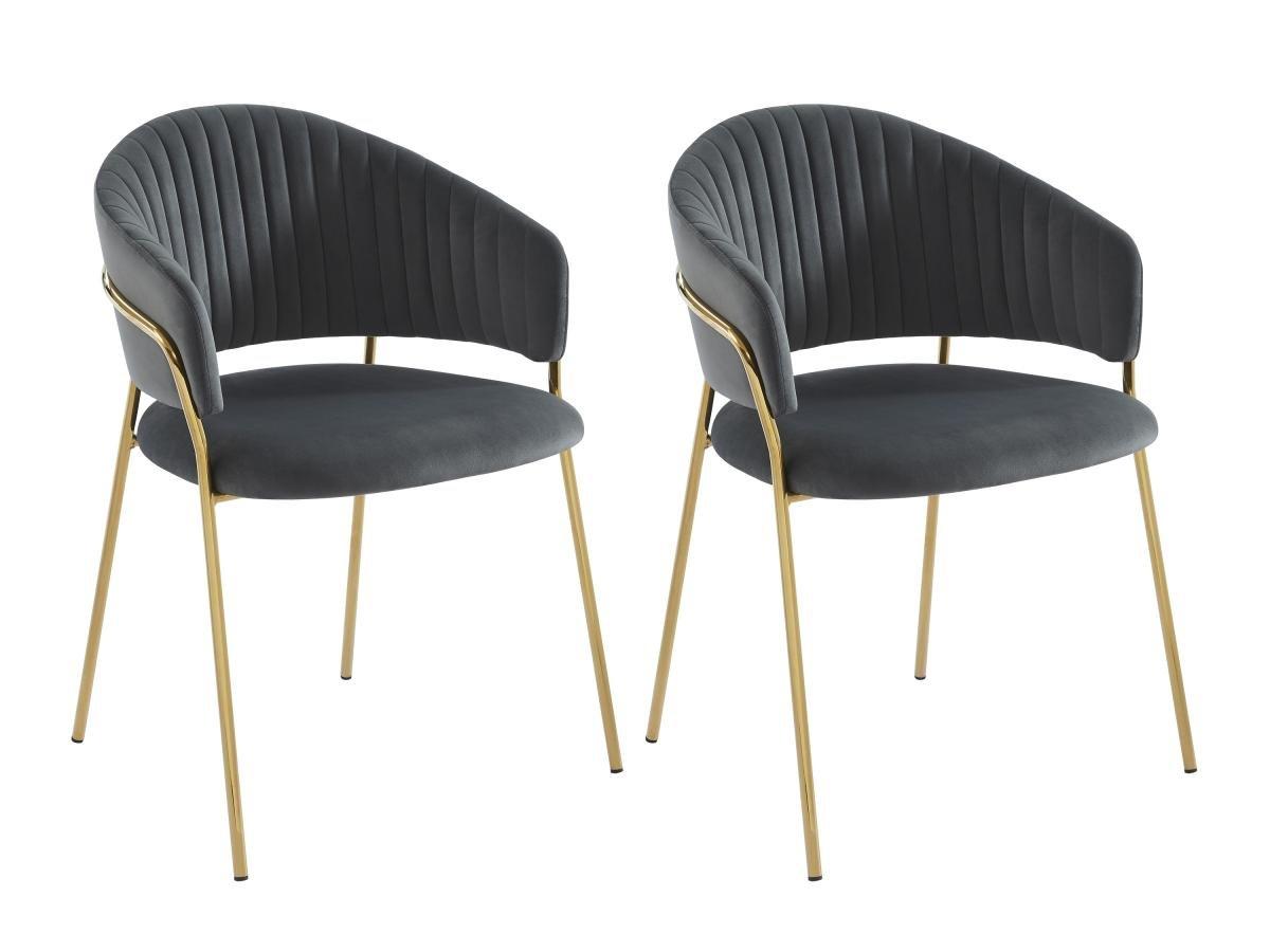 Vente-unique, Stuhl 2er-Set - Samt & goldfarbenes Metall - Grau - MADOLIA von Pascal MORABITO