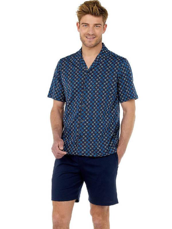 Das Marvin Pyjama Set bietet Komfort und Stil für entspannte Stunden zu Hause. Das kurzärmlige Oberteil verfügt über eine durchgeknöpfte Vorderseite und ein modisches, trendiges Design. Die passenden Shorts runden den entspannten Look ab und machen dieses Set ideal zum Loungen.