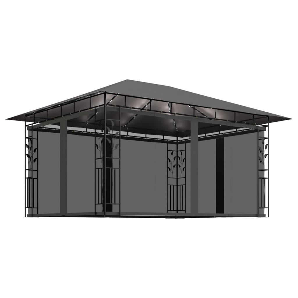 Der Rahmen verfügt über eine robuste Metallkonstruktion, was den Pavillon langlebig und stabil macht. Das Stoff-Sonnendach schützt Sie vor der sengenden Sonne und bietet mehr Komfort bei Aktivitäten im Freien. Mit Moskitonetzen ausgestattet, schützt Sie das Gartenzelt auch vor Insekten und Mücken. So können Sie Ihre Freizeit im Freien ungestört genießen. Zudem lässt sich dieser Pavillon schnell aufbauen. Darüber hinaus schafft die Lichterkette eine gemütliche Atmosphäre im Garten bei Sonnenuntergang. Die Leuchten sind umweltfreundlich, da sie tagsüber durch Sonnenenergie aufgeladen werden.