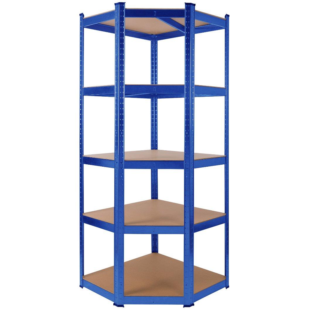 ABMESSUNG] Eckregal 180 x 70 x 70 cm | Traglast 875 kg | Stecksystem ohne Werkzeug | starke MDF Böden | 5 Böden | Farbe Blau | extra große Materialstärke des Gestells von 0,7 mm
