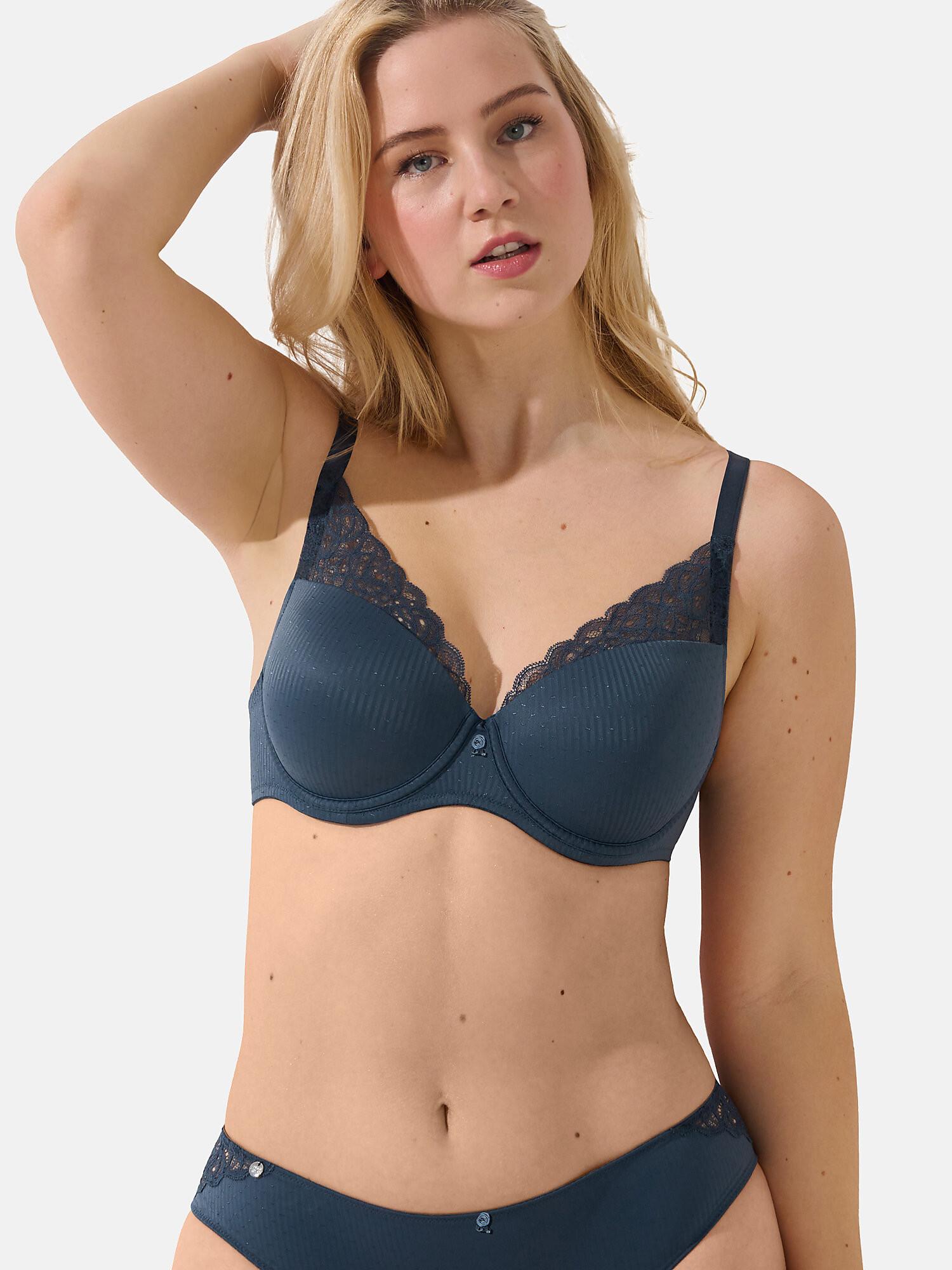 Dieser vorgeformte BH aus der Delightful-Kollektion verfügt über gepolsterte Cups mit einem zusätzlichen Gummiband darunter für verbesserten Halt und eine perfekte Passform. Spitzendetails über den Cups schaffen eine moderne Dreiecksform. Bequemer Jacquard-Strick befindet sich am Rücken und über den Cups. Der Rücken ist in größeren Größen für noch mehr Halt und Funktionalität gefüttert. Eine dekorative Blume ziert die vordere Mitte. Das Verschlussband und die Träger sind für eine perfekte Passform verstellbar und werden mit zunehmender Größe breiter.