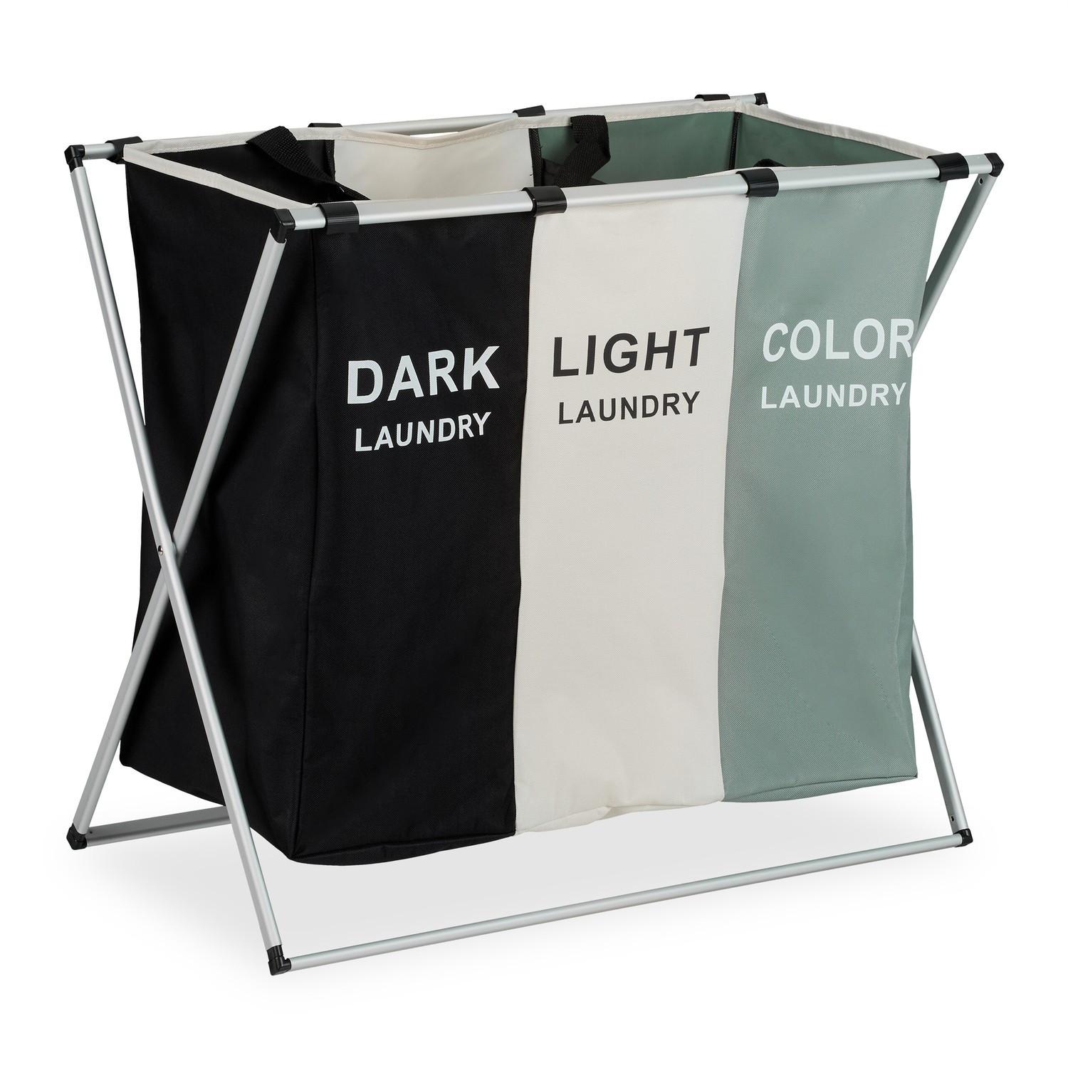 Der faltbare Wäschekorb sorgt mit drei Fächern für Ordnung und effizientes Sortieren nach Farbe oder Material das spart Zeit und Mühe.