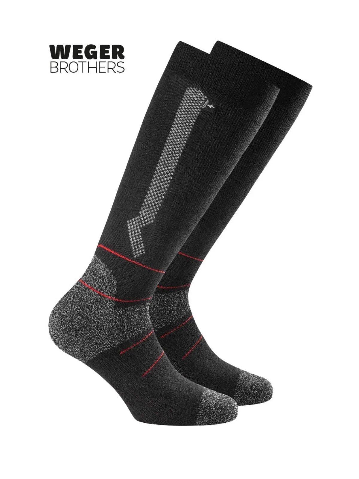 Diese fortschrittlichen Rohner Ski- und Snowboard-Socken wurden gemeinsam mit den Profi-Athleten Jakob und Matthias Weger entwickelt, Experten für Skiabenteuer im verschneiten Gebirge.
